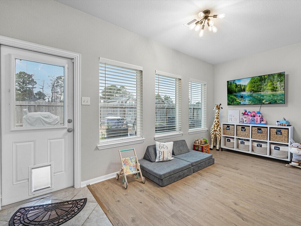 Thoughtfully designed Tomball ISD single-story,located in the quaint and accessible neighborhood of Grand Junction. 3 Bedrooms,Split floor plan - 2 Baths & a Study/Flex space. Thoughtfully updated interior,featuring LVP flooring in the living areas,spacious open concept design w/ a formal dining and a gorgeous kitchen,offering ample counter & cabinetry space. The flex space is ideal for a play room or office area,privately located in the rear of the home. The primary suite hosts a full bath w/ separate soaking tub,shower,& walk-in closet. Enjoy your own private backyard with no neighbors immediately to the rear,as well as a bonus privacy buffer between one side neighbor due to an easement. This neighborhood offers quick access to 249 and all that the growing Tomball area has to offer. MLS# 68720484