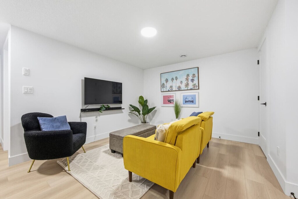 The advertised rate of C$1,622/month is the lowest available price, based on a 30 day(s) stay with a move-in date of March 9, 2026. Rates vary depending on the duration of stay, season, and other parameters. For exact pricing and additional pricing components, please visit our website and enter your desired move-in and move-out dates. The rate is applicable when billed upfront; it can be higher if billed in multiple payments. Welcome to The Pop Stop, a modern and comfortable basement suite in west-end Edmonton. Located in a quiet residential neighborhood, this suite offers easy access to major attractions, shopping, and key routes. Feel at home in this cozy basement suite designed for comfort and convenience. Inside, you’ll find modern finishes and a thoughtfully designed layout. Enjoy streaming your favorite shows on the Smart TV and stay connected with fast Wi-Fi. The fully equipped kitchen features stainless steel appliances such as a microwave, fridge, and electric stove, along with glasses, mugs, dishes, and cutlery. A washer and dryer are available in the laundry room, along with complimentary detergent, an iron, and an ironing board. A pack n play and high chair are available. Located in Inglewood, this quiet, family-friendly neighborhood is known for its wide streets, mature trees, and relaxed residential vibe. It’s ideal for guests looking for a peaceful stay while still being close to major Edmonton attractions. Inglewood offers quick access to downtown Edmonton, West Edmonton Mall, major roadways, parks, and everyday essentials like grocery stores, restaurants, and coffee shops. Quiet hours are from 10 PM to 8 AM, and a $500 fee will be charged if there is evidence of any unauthorized events or parties. Pets are not permitted, and a minimum $250 fee will be charged if there is evidence of any unauthorized pets. Smoking, vaping, and the use of illegal substances are strictly prohibited inside the property, and violations incur a minimum $400 fee, with additional cleaning charges if damage or lingering odors are found. Unauthorized guests will be asked to leave, and unregistered guests will incur a $40 fee per person per night. A $50 fee will apply if you check out more than 30 minutes past the scheduled time without prior notice or approval, with an additional $50 charged for every subsequent 30 minutes up to 2 hours. Where applicable to properties using physical keys or access fobs, a $250 fee will apply for any items that are lost, damaged, or not returned after checkout. Registration Number: 643995222-001 [SI]