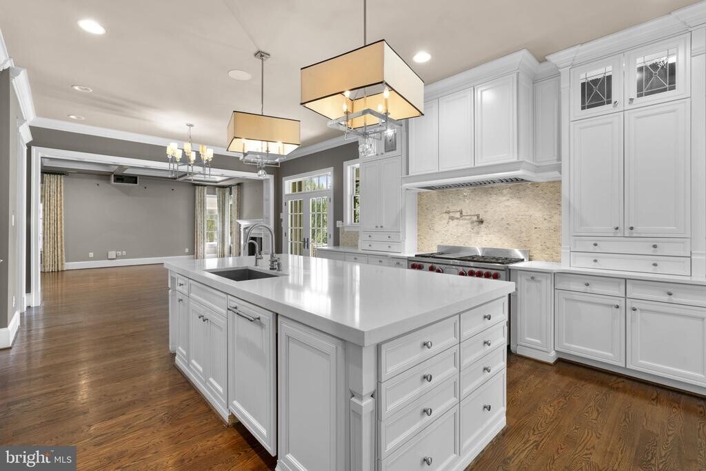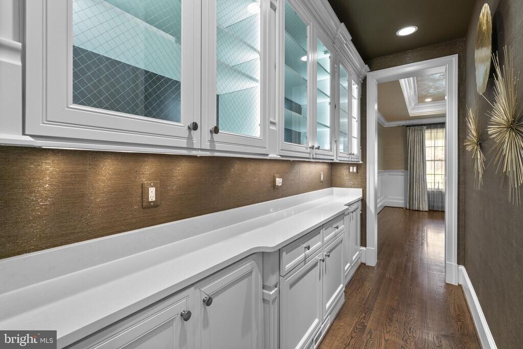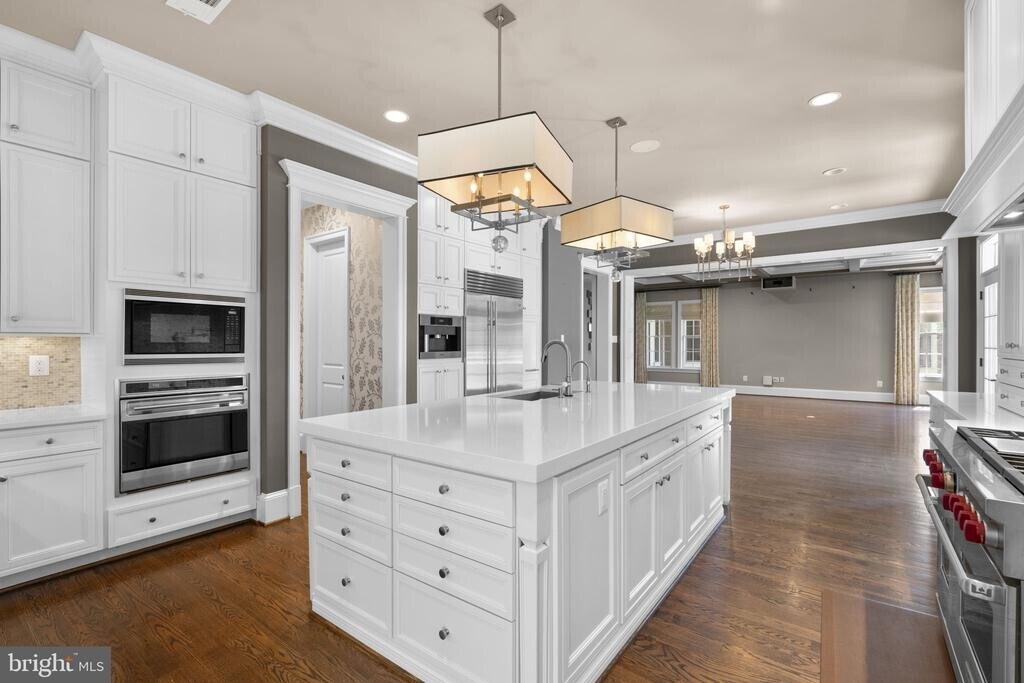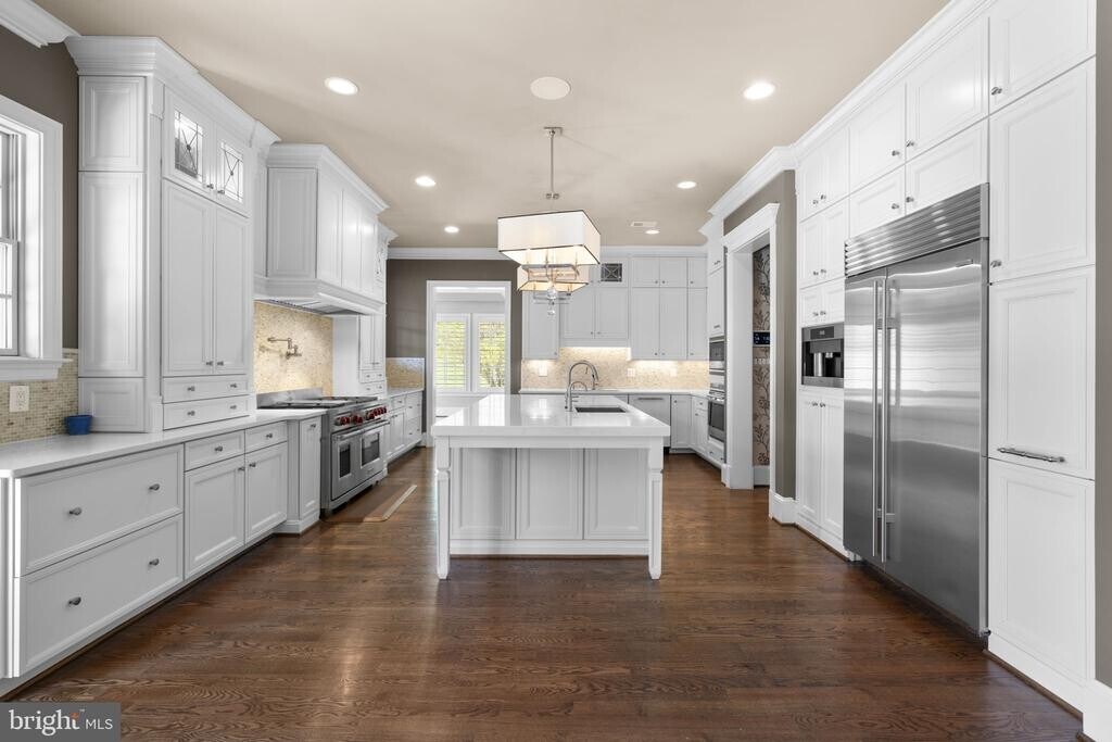 Exquisitely crafted transitional estate, this custom single-family residence offers 5 bedrooms, 7 full baths, 3 half baths, over 6,700 square feet of refined living space, and a 5-car garage. Privately sited on 1.1 acres at the end of a quiet cul-de-sac in the prestigious Riverwood enclave, this home presents a rare leasing opportunity defined by scale, privacy, and architectural distinction. Inside, a seamless fusion of modern sophistication and timeless design unfolds through a thoughtfully curated floor plan. Statement designer lighting, intricate millwork, graceful curved walls, and architectural arches are complemented by coffered, tray, and soaring two-story ceilings. Three gas fireplaces, wainscoting, custom window treatments, atrium and transom windows, and elegant French doors elevate the interiors, while a sophisticated blend of engineered hardwood and marble flooring adds warmth and texture throughout. A grand foyer sets the tone, flanked by expansive formal living and dining rooms, with the dining space enhanced by a dedicated wine storage feature. The open-concept layout flows effortlessly into a striking family room anchored by coffered ceilings and a fireplace, while a well-appointed butler’s pantry provides both function and polish. The sunlit breakfast area, complete with a built-in workstation and access to the balcony, connects seamlessly to the heart of the home. The gourmet chef’s kitchen is designed to impress, featuring quartz countertops, premium appliances including a six-burner gas range with pot filler, dual dishwashers and sinks, two pantries, and an oversized island with breakfast seating. Custom white shaker cabinetry extends to the ceiling, offering both beauty and abundant storage. A luminous Florida room with sweeping windows and balcony access invites relaxed living, while a private office with custom built-ins sits discreetly behind French doors. A mudroom and two elegantly appointed powder rooms complete the main level with intention and ease. Hardwood flooring continues throughout the upper level, featuring four generously sized bedroom suites, each with its own attached bathroom. The luxurious owner’s suite offers a private sitting room with a double-sided gas fireplace, balcony access, custom built-ins, two expansive walk-in closets—one with access to a bonus room—and a spa-inspired ensuite bath with marble flooring, a soaking tub, and dual vanities. A versatile bonus room (attic) with cathedral ceilings—ideal as a playroom or additional bedroom—and a centrally located laundry room complete the upper levels. The walk-out lower level is an entertainer’s dream, highlighted by a spacious recreation room with a gas fireplace and a fully equipped bar, a powder room, and a game room. This level also includes an additional bedroom with an attached bathroom, two versatile bonus rooms each with en-suite baths, and a separate room behind French doors perfect for a home gym. Outdoor living is equally impressive, featuring multiple balconies and deck areas, a large covered stone patio with a hot tub, and beautifully manicured grounds complete with a heated infinity pool, elegant water feature, fire pit, and a fully fenced backyard backing to mature trees. A welcoming front porch and expansive driveway complete this exceptional offering.