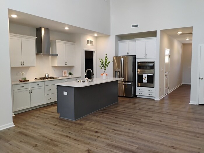 Brand New 3 bd. 2.5 bath TH, in Durham's premier 55+ community Ovation at Sweetbrier! This beautifully crafted townhome offers main-level living, stylish finishes, and thoughtful design throughout. A two-car driveway offers ample space for guests or everyday convenience. Step inside to soaring two-story ceilings and expansive windows that fill the open living space w/ natural light. Luxury vinyl plank flooring flows seamlessly across the main level, blending durability with warm, modern style. At the heart of the home is the chef-inspired kitchen, featuring a spacious center island w/ pendant lighting and elegant quartz countertops. High-end stainless steel appliances include a gas cooktop, convection microwave, wall oven, and a stainless vent hood--designed to make everyday meals and entertaining effortless. Walk-in pantry! From the kitchen, extend your living outdoors to the covered screened-in porch, a quiet, private retreat, perfect for relaxing w/ coffee, reading in the afternoon sun, or enjoying dinner outside. It's your own personal getaway. The main-floor primary suite is tucked at the rear for extra privacy and includes a spacious walk-in closet, and a spa-inspired bath w/ a tiled walk-in shower, bench seat, double vanity, and linen storage. Upstairs, an open loft area offers flexible space to be used as a home office, creative nook, or second lounge. Two additional bedrooms and a full bath create a comfortable space for guests. Large walk-in storage area keeps everything organized without taking up closet or garage space. Spend more time doing what you love. Ovation at Sweetbrier offers resort-style amenities including a clubhouse, fitness center, pool, hot tub, pickleball and tennis courts, dog parks, outdoor chess garden, community garden, scenic walking trails, and a lifestyle director organizing events, classes, and social gatherings--so there's always something to look forward to. All just minutes from Brier Creek Parkway, I-540, RDU Airport, and premier shopping, dining, golf, and entertainment. This property allows self guided viewing without an appointment. Contact for details.