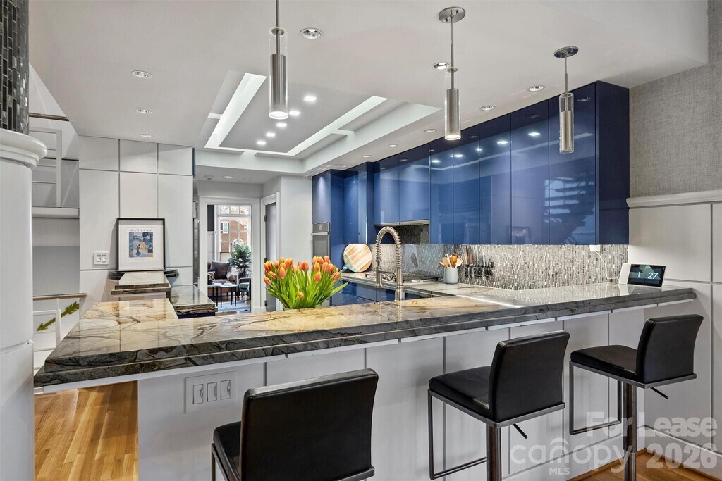 Set within the heart of Dilworth Crescent Row,this turn-key,fully furnished end-unit residence offers a rare opportunity to live in one of Dilworth’s most walkable and sought-after enclaves. Steps from acclaimed restaurants,boutique shopping,and just moments from Uptown and Bank of America Stadium,the home delivers effortless city access with the privacy and polish of a thoughtfully designed retreat. Completely reimagined in 2019 by renowned designer Scott Carpenter,the residence spans multiple levels with soaring ceilings,an open iron staircase,and an inviting flow that works beautifully for both everyday living and entertaining. The main level features a light-filled great room with gas fireplace,seamlessly connecting to a beautifully appointed dining area and a chef’s kitchen with custom lacquered cabinetry,granite surfaces,Sub-Zero refrigeration,and premium appliances. Just off the kitchen,a charming sitting area offers the perfect place for morning coffee,casual conversation,or a quiet moment to unwind. A richly styled lounge with custom built-ins creates an intimate retreat for reading,conversation,or an evening cocktail. The built-in bar moment transforms this space into a true showpiece,equal parts library,sitting room,and private speakeasy. Upstairs,the primary suite feels like a true sanctuary with dramatic onyx finishes,a steam shower with waterfall head,and a private balcony. Two additional guest rooms offer comfort and privacy,each with beautifully appointed ensuite baths. The lower level includes a fourth bedroom,full bath,and a dedicated home theater designed for immersive movie nights,game-day gatherings,and relaxed evenings at home. An expansive walk-in attic on the fourth floor provides exceptional storage. Outdoors,a limestone patio extends the living space with a gas fireplace,fountain,custom lighting,and outdoor kitchen,creating a perfect setting for evening gatherings. A private gate opens directly to Dilworth Road,offering easy guest parking and an immediate connection to the neighborhood’s vibrant energy. Offered fully furnished and truly move-in ready,this is a rare opportunity to step into a lifestyle,not just a home. Schedule your private tour and experience Dilworth living at its best! MLS ID CAR4336209