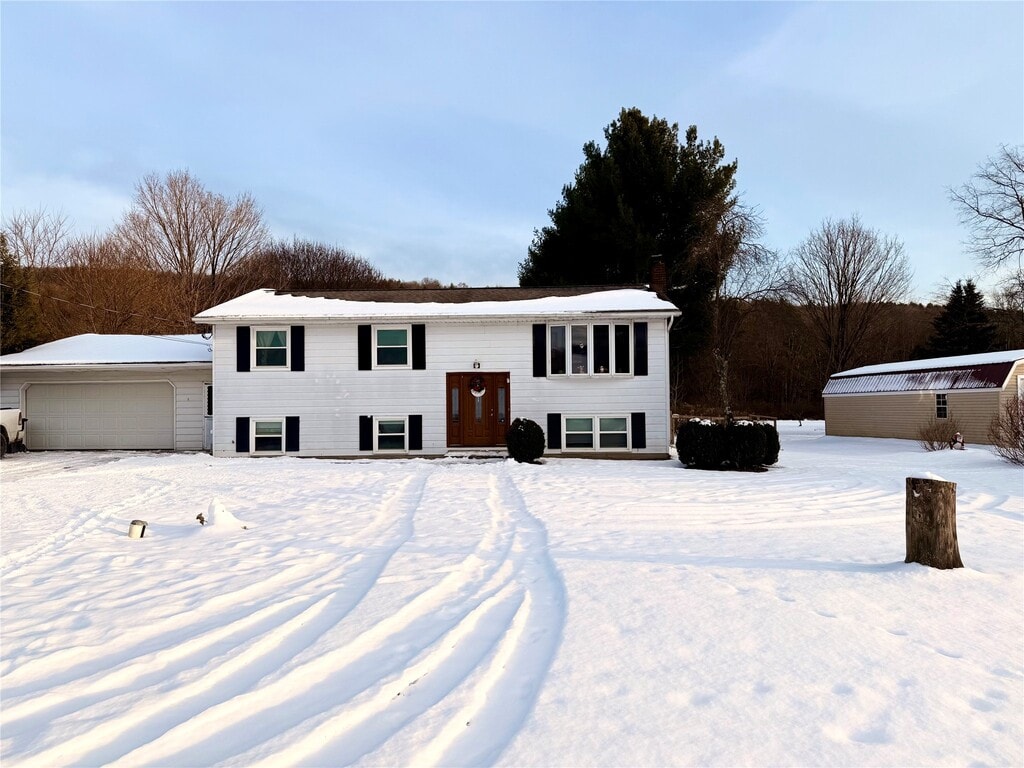 HOUSE FOR RENT. Enjoy the Space and versatility of this Spacious Split-level home offering 3 bedrooms,1 Full bathroom,1 half-bath. Perfect for comfortable living with room to spread out. Choose between bright upstairs living or a cozy finished lower level,complete with functionality for recreational use. lower level includes pellet stove,half-bath,Built in hair salon sink. Set just under 1 acre,this property features a private backyard view,a beautiful deck,ideal for unwinding and relaxing,and even a chicken coop for those seeking country charm. Additional highlights include a 2-car attached garage with workspace and ample storage,perfect for hobbies or projects. This home Truly has it all- Space,Comfort,character,and functionality. Available for rent- Schedule your showing today!