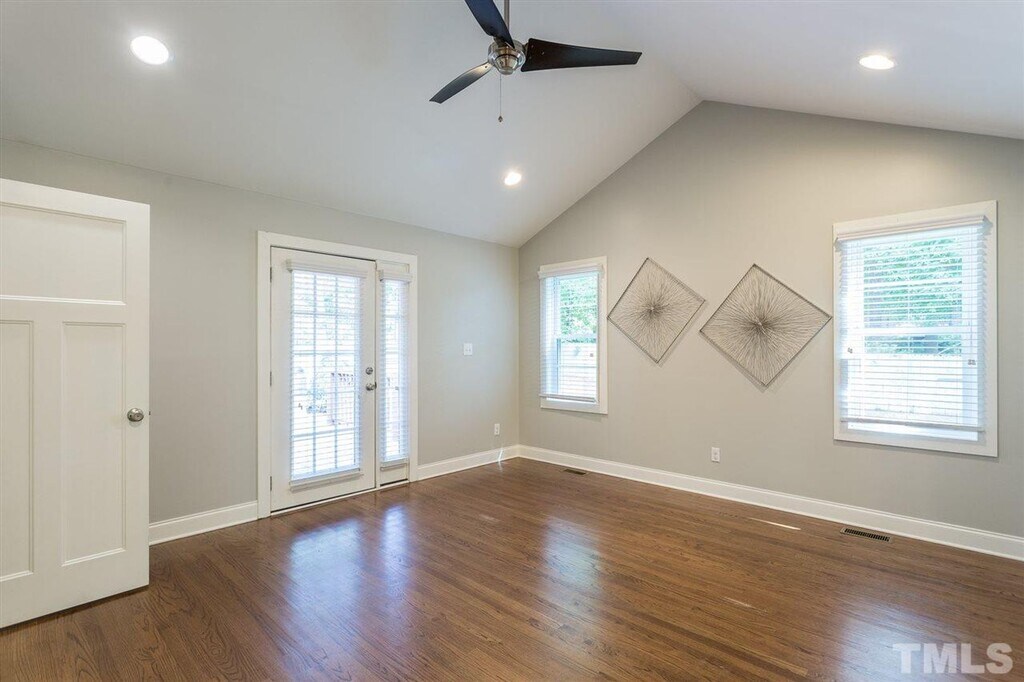 1124 Tonsler Drive in Raleigh is offered by Highland Property Management. Contact Will Spence for a scheduled tour! Info @ highlandpm . net ) AVAILABLE EARLY JULY Welcome to this stunning 4-bedroom, 2.5-bathroom ranch home located in one of Downtown Raleigh's most coveted neighborhoods, near Mordecai, Oakwood, Fletcher Park, Brookside Bodega, and so much more! This spacious house boasts an open floorplan with premium hardwood floors and vaulted ceilings, creating a spacious and inviting atmosphere. The large living room and formal dining area are perfect for entertaining guests, while the updated kitchen features soft-close cabinetry, granite countertops, and stainless-steel appliances including a gas range. Additional features include a fantastic bonus room/den off the kitchen, large primary suite with walk-in closet, updated bathrooms, premium hardware & lighting, ceiling fans, and a convenient laundry room with washer/dryer included. Enjoy outdoor living on the private rear deck overlooking the fenced-in backyard on a corner lot. With a one-car garage and pet-friendly policy, this home has everything you need for comfortable and stylish living.