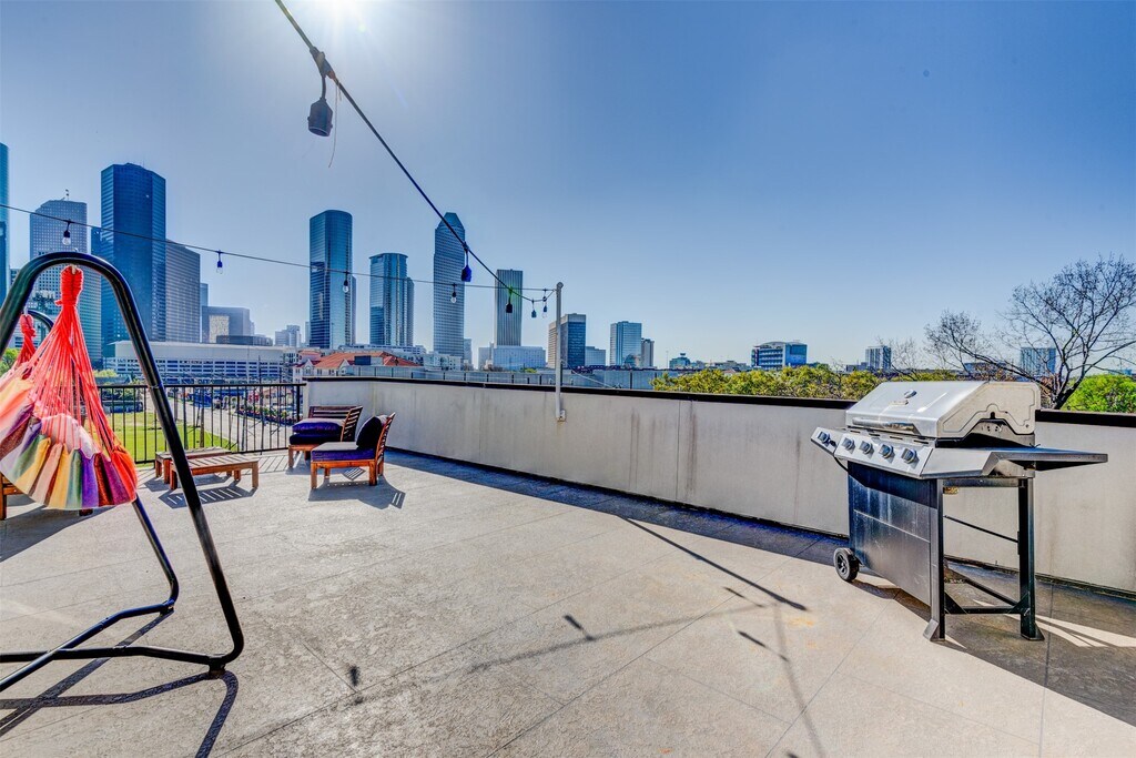 What's not to love about this home,massive windows,skyline views,roof-top living and more. 1st level,In-Law suite,spacious private bedroom,full bathroom with plenty of storage & closet space. Second level is all about the massive window's,balcony and astonishing view of downtowns skyline. Open kitchen w/ Island,SS appliances,new refrigerator,wet bar,coffee bar and built-in desk. enjoy yet another skyline view as you travel to the 3rd level which host the primary suite. With yet another private patio w/ skyline view,walk-in closet,dual sinks,separate shower & tub. The main attraction,the gorgeous skyline view from your own rooftop! Washer,Dryer,Refrigerator,Patio Furniture,mini fridge all included. Very convenient location easy access to downtown and Montrose,quick access to Highways 45,59,and 10. Ditch your car and expensive parking fees with a five-minute stroll to Downtown. Also walking distance to Midtown and beautiful Buffalo Bayou Park. Ready for move-in MLS# 92500820