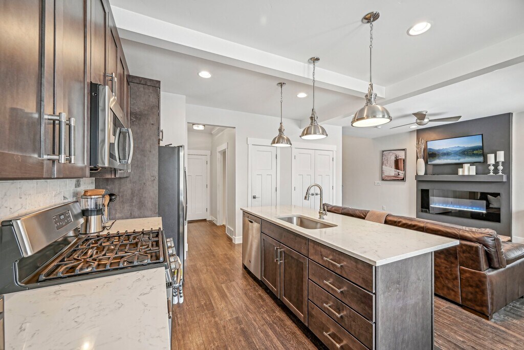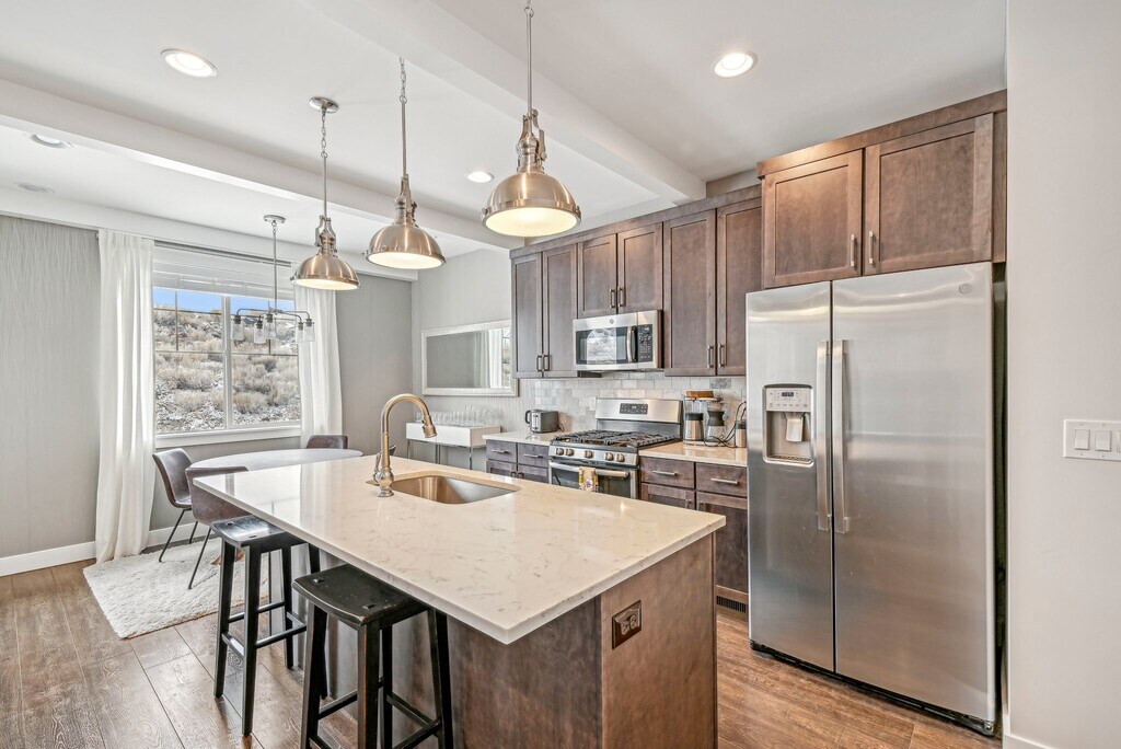 This incredible 2,200 sq. ft. townhome is perfectly situated for both tranquility and adventure. The property is located just minutes from two world-class ski resorts. - 4 bedrooms (3 queen beds and one bunk bed set), plus a queen pull-out sofa in the living room and a queen bed in the basement. Comfortably accommodates up to 8 adults & 2 kids Featuring: - Deluxe dry sauna for après-ski relaxation - 2-car garage - Pet-friendly for 1 dog (additional fee applies) - Central air conditioning and heating ensure a cozy stay year-round. - A full-size washer and dryer are located in the upper-level hallway closet. - A front door camera is installed for your peace of mind. Winter Fun: Ski or snowboard at Park City Mountain, The Canyons, or Deer Valley—all within 10 miles. Summer Adventures: Explore 400 miles of bike trails, hike the Uintas, play golf, or enjoy water activities at Jordanelle Reservoir. Nearby Amenities: - 6 miles to Park City Main Street for dining, shopping, and entertainment - 5 miles to Fresh Market grocery store and liquor store - Black Rock Ridge Resort & Hotel is just down the street, offering a spa, restaurants, and a highly recommended bar. Pet Policy: 1 dog is welcome with a $150 pet accommodation and cleaning fee. No other animals are allowed without prior approval.