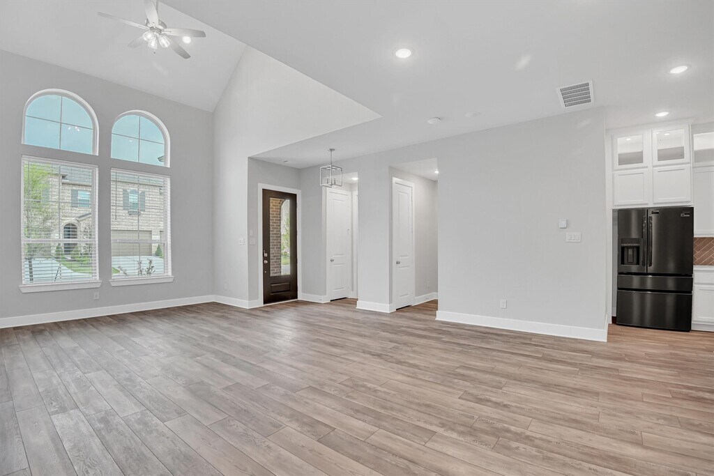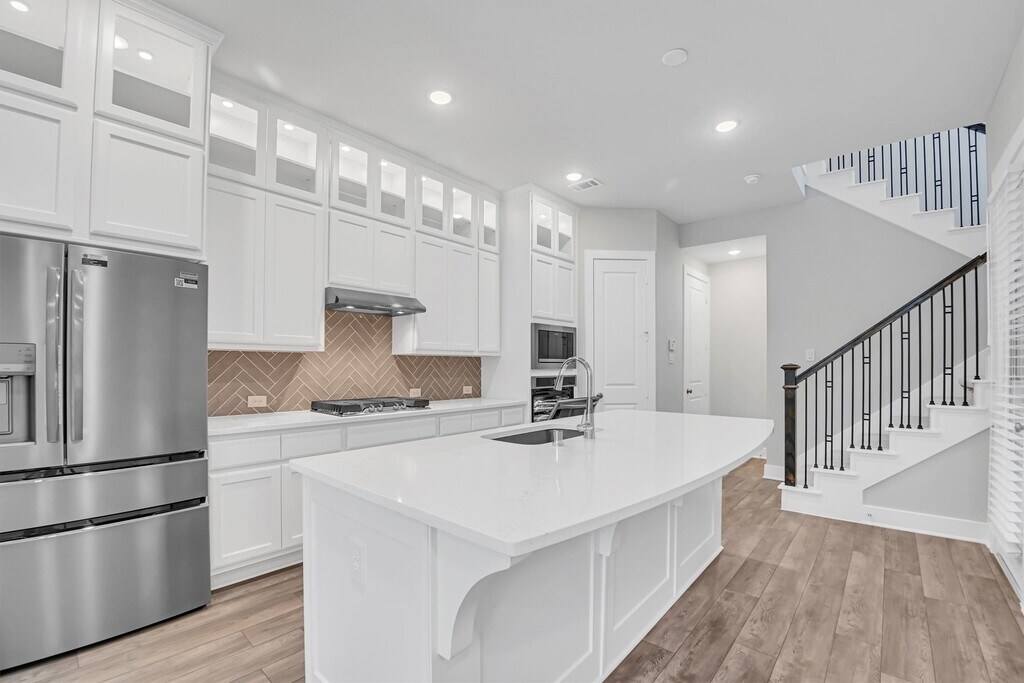 This nearly new luxury villa combines modern sophistication with relaxed lakeside living. With three spacious bedrooms,two and a half baths,and over 2,100 square feet,this home provides both comfort and style for discerning residents. Step inside to a bright,open interior with designer finishes,high ceilings,and abundant natural light. The chef’s kitchen features premium stainless steel appliances,quartz countertops,an expansive island,and generous storage. The open-concept design flows seamlessly into the living and dining areas,ideal for entertaining or quiet evenings at home. The primary suite offers a spa-style bath,dual vanities,and a large walk-in closet. Outside,enjoy a private fenced patio and an attached two-car garage for added convenience. Towne Lake residents experience a resort-inspired lifestyle with a 300-acre lake,marina,boardwalk,fitness centers,pools,splash pads,walking trails,and lakeside dining just minutes away. MLS# 83814692