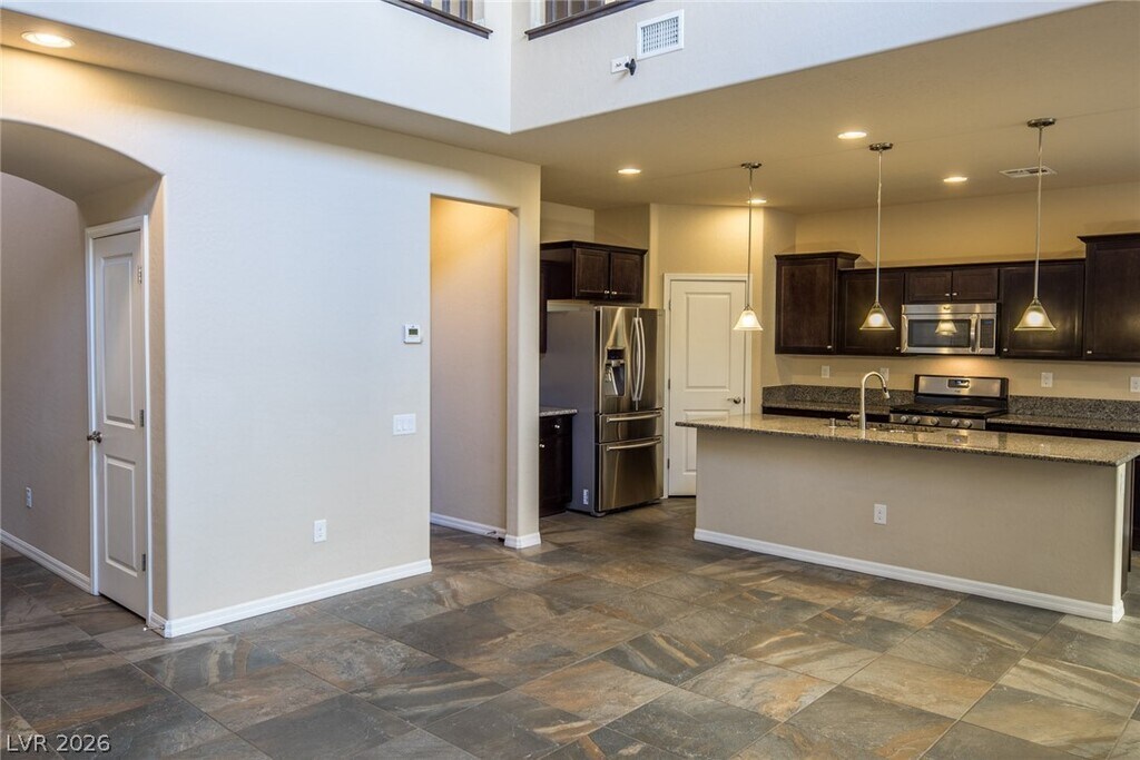 ABSOLUTELY STUNNING HOME IN POSH DOWNTOWN SUMMERLIN! THIS 3 BDRM/2.5 BATH HOME HAS OPEN LAYOUT DOWNSTAIRS & DRAMATIC 19' HIGH CEILING IN FAMILY ROOM. SPACIOUS PRIMARY WITH 2 WALK IN CLOSETS & WALK IN DOOR LESS SPA SHOWER. HIGH END FINISHES, SLATE TILE FLOORS, GRANITE COUNTER TOPS IN BATHROOMS & KITCHEN, STAINLESS STEEL APPLIANCES. SOLAR PANELS, TANK LESS WATER HEATER & CONDITIONER. LOW MAINTENANCE REAR YARD ROUNDS OUT THIS HARD TO FIND GEM.