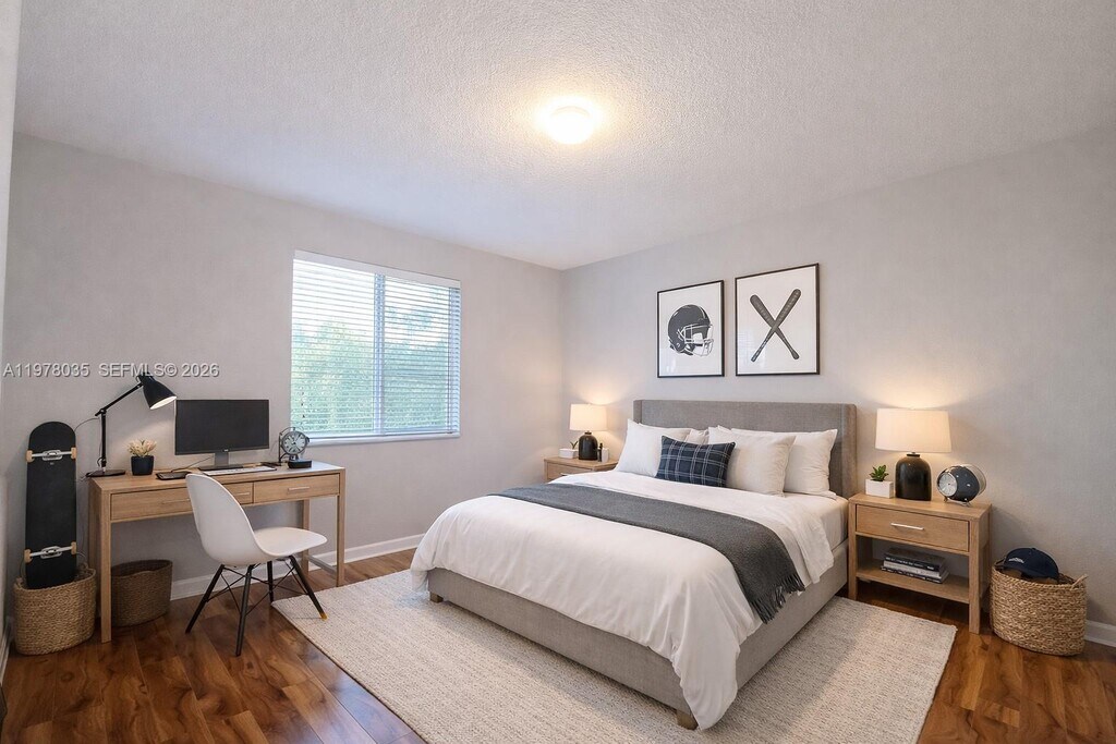 Discover this stunning 4-bedroom, 2-bath townhouse in the highly sought-after Silver Palms community. This home boasts a spacious layout, including a convenient garage, elegant tile flooring on the first floor, and warm wood flooring on the second level. The modern kitchen features sleek stainless steel appliances, perfect for both everyday living and entertaining. Hurricane shutters are included, providing peace of mind and added security. One balcony connects two of the bedrooms, creating a perfect shared outdoor space, while a second private balcony is exclusive to one bedroom. Ideally situated near shopping centers, the marina, and with easy access to the Turnpike, this property combines comfort, style, and convenience in one unbeatable location. Experience the perfect balance of tranquility and accessibility in this charming Silver Palms home. Schedule your showing today, this gem won't last long! MLS # A11978035