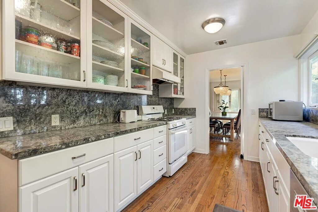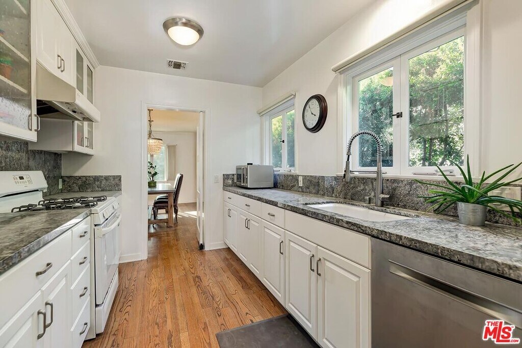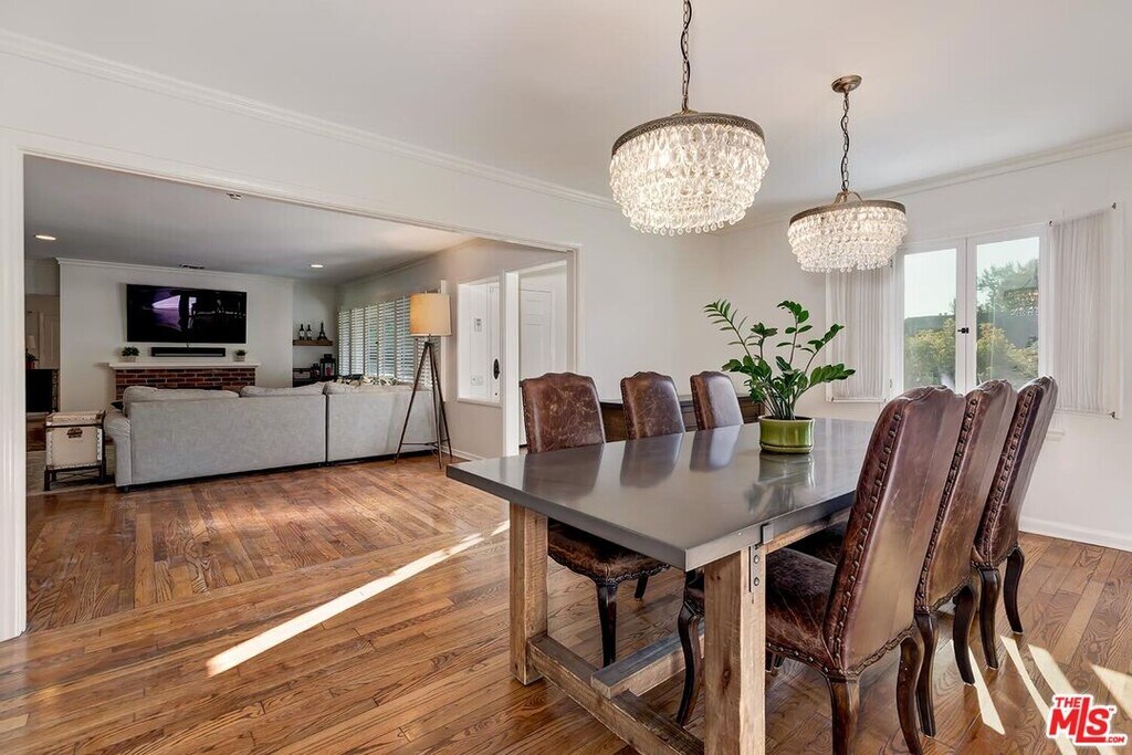 Charming Traditional with great flow in the extremely desirable Westwood Hills neighborhood! Open Living room has a fireplace & large windows looking out to treetops to provide tranquility & great natural light. Spacious formal Dining room, also with treetop views, flows from the living room & leads to an updated kitchen with granite countertops & great storage, including a large walk-in pantry. The great flow continues with a Family room off the living room with built-ins, ideal for a playroom & entertaining, as it has French Doors opening to the gorgeous, private grassy backyard, also making it ideal for California living. There are 3 bedrooms including a gracious primary en-suite with fireplace, walk-in closet, sitting area & French Doors opening to the patio & backyard. The Primary en-suite full bath is updated with double sinks & separate tub & shower. Terraced gardens, large grassy area & patio make the outdoors a fantastic entertaining haven. This cheerful home is filled with character, natural light, beautiful hardwood floors throughout, newer central AC, newer roof, solar, curb appeal & 2-car garage with storage. Desirable Warner Avenue School District. MLS ID 26764637