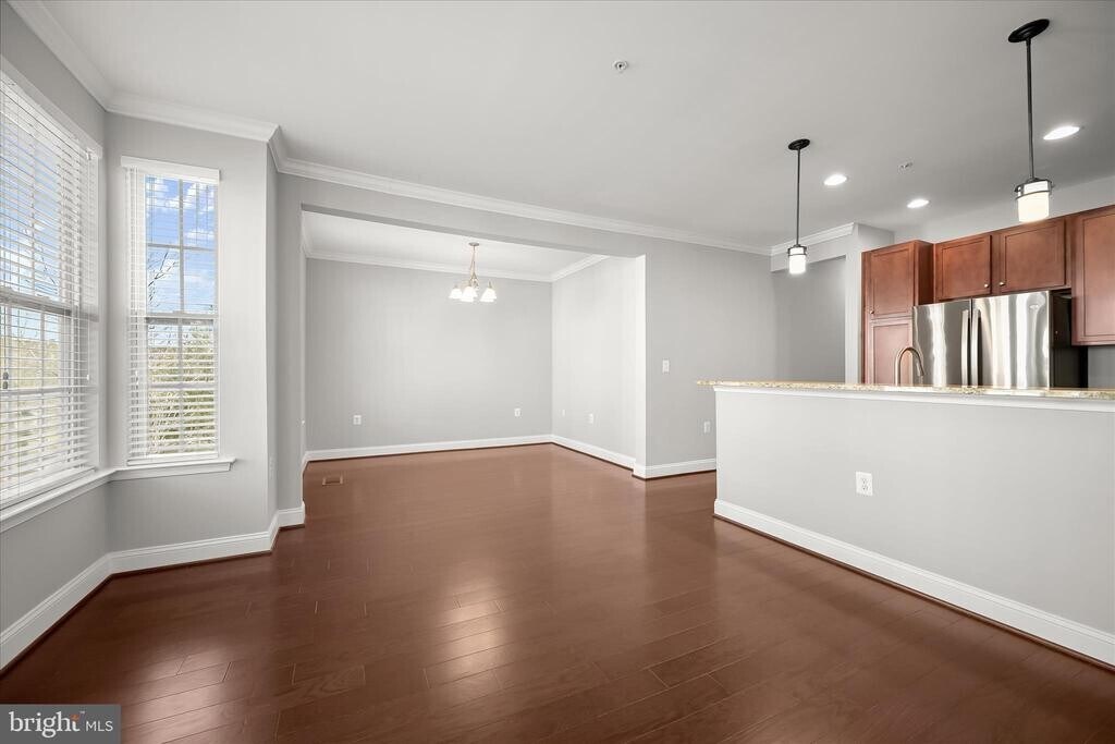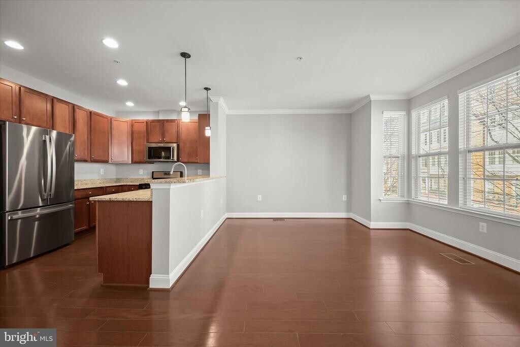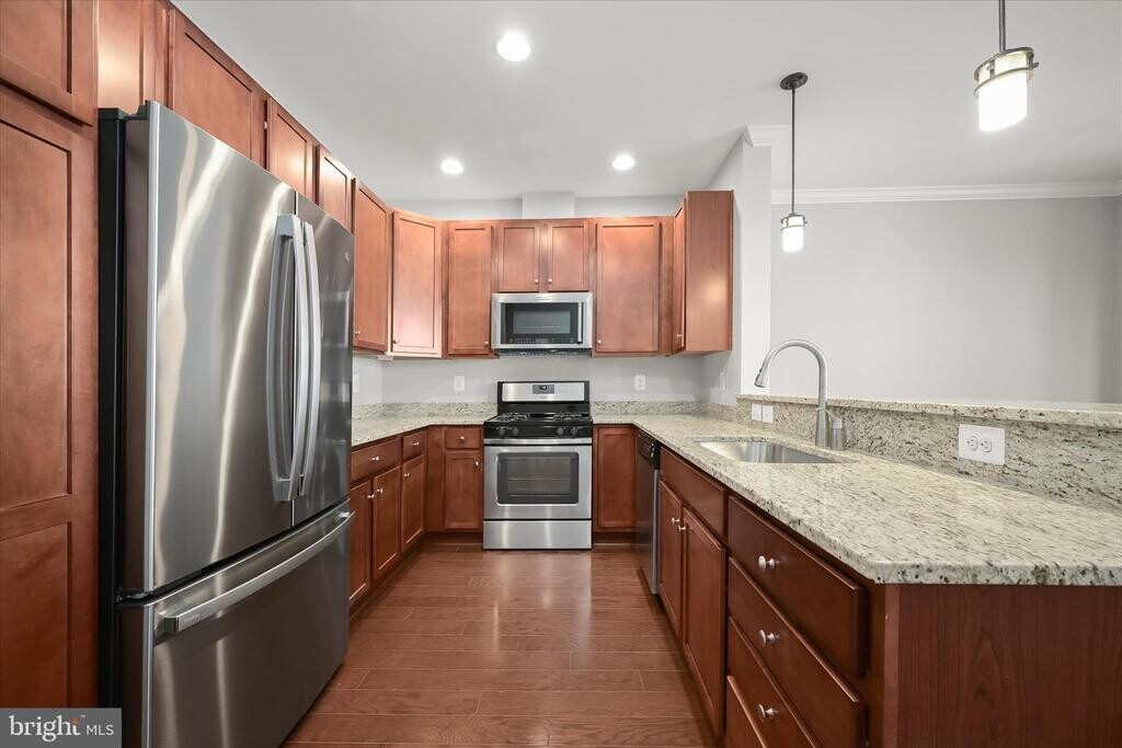 Available for immediate occupancy! Welcome home to this beautifully designed luxury two-story condominium located in the desirable Midtown District of Maple Lawn! This prime location offers convenient access to the pool, gym, and community center plus an amazing pond view. Enjoy pristine hardwood floors, bright interiors, and crown moldings throughout. The main level welcomes you with a spacious family room, a large bay window bump-out, a half bathroom and entry to the private attached garage. The upper level’s inviting living and dining areas and impressive windows provide the ideal spot for hosting gatherings. The kitchen is a chef's dream featuring granite countertops, 42†cabinetry, stainless steel appliances, pendant lighting, and a breakfast bar. The primary suite is a tranquil retreat complete with a walk-in closet and luxurious bathroom featuring large shower and a dual sink vanity. An additional bedroom, full bath, and laundry area further enhance this exceptional home. Conveniently located close to all major Baltimore/DC commuter routes, and with enviable amenities including a resort-style community pool, tennis courts, pickleball courts, basketball courts, state-of-the-art gym and more, you’ll quickly see why Maple Lawn is one of the most sought-after communities in the region. Hurry! 11246 Chase Street won’t last long.