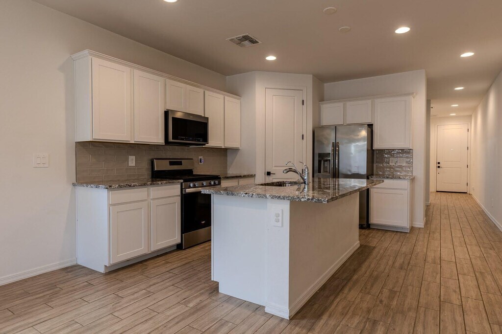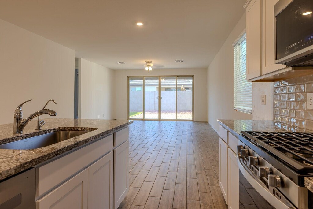 Beautifully 2022 built 4 bedroom plus den,3 bathroom single level east Mesa home located in Destination at Gateway. The home has upgrades throughout including wood plank style tile flooring in all living areas,upgraded neutral carpeting in each bedroom,neutral paint throughout,9' high ceilings,upgraded recessed LED lighting,upgraded window blinds,and ceiling fans in each room. Beautifully tasteful open kitchen features granite countertops,subway tile backsplash,breakfast bar,separate pantry,gas range and all appliances. This is a split-level floor plan with a huge primary suite,walk-in closet,double sink vanity,storage area and oversize step in shower. Washing machine and dryer are included. Nearby children's playground,picnic area,huge open community park,market place,A rated schools and free way to top it. Maintenance free backyard MLS ID 7019353