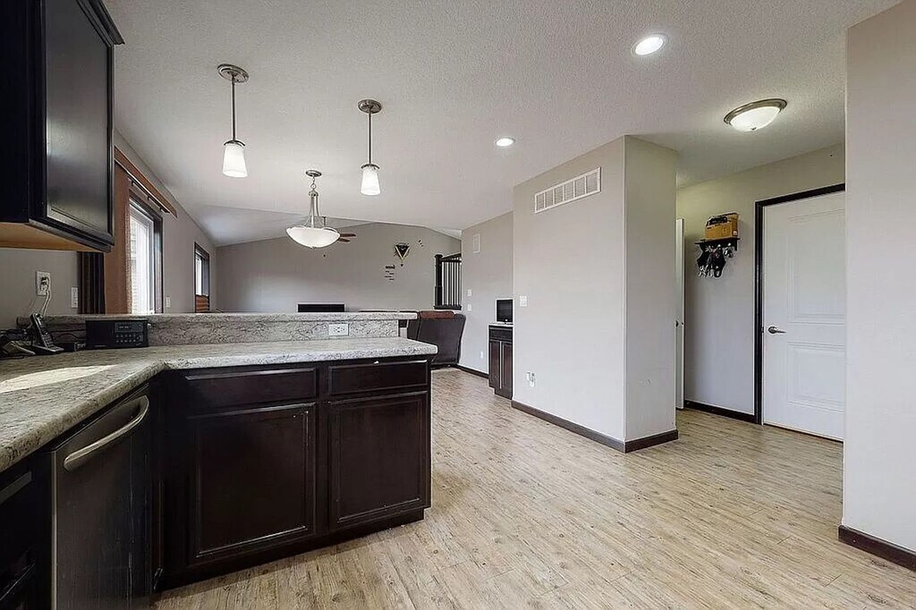 This beautiful 2 story is located in a family-friendly neighborhood. The main level features a vaulted ceiling living room and dining room. Also on the main level is a half bath. The kitchen features LVP floors, laminate counters, a tiled backsplash, stainless steel appliances, pantry, and a breakfast bar. Appliances stay with the home. The master bedroom is located on the upper level and features brand new LVP floors and a walk-in closet. The attached master bath includes solid surface counters and Tub/Shower Combo. The Upper level includes 3 bedrooms, 2 full baths, and a laundry room. The finished lower level features a full bath and storage area and new LVP flooring. Outside you'll find a treated wood deck and patio overlooking the yard. The attached two-stall garage is 484 sqft and heated with an exhaust fan! Tesla car charger included.