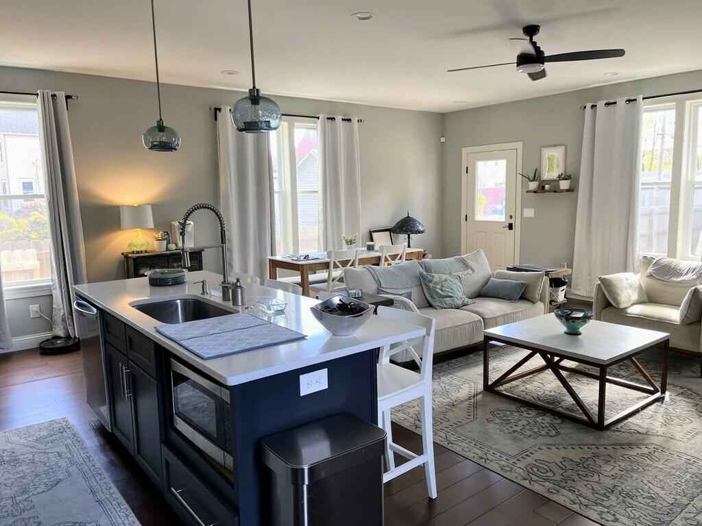 Welcome to 1125 East Mound Street, a stunning 3-bedroom, 3.5-bathroom home located in the vibrant city of Columbus, OH on the Near East Side. This home boasts a host of modern amenities, including a remodeled kitchen with stainless appliances, granite countertops, new lighting, and new plumbing fixtures. The eat-in kitchen is perfect for casual dining, while the family room provides ample space for relaxation. The home also features hardwood and tile floors throughout, adding a touch of elegance to the space. The bedrooms are spacious, with the added luxury of a walk-in closet in the master suite. The home also includes an additional full bath and half bath for convenience. The basement offers extra storage or can serve as the 3rd bedroom or bonus room, complete with egress access, wet bar, and full bath. The property also includes a deck, perfect for outdoor entertaining. The home is equipped with central heating and cooling, ensuring comfort all year round. The keyless access provides an extra layer of security. The property also includes private garage parking, a washer/dryer, and a fenced yard that is pet-friendly. The home is conveniently located near a bus line, making commuting a breeze. To top it all off, lawncare is included, allowing you more time to enjoy your new home. This home is a perfect blend of comfort and convenience, making it a must-see!