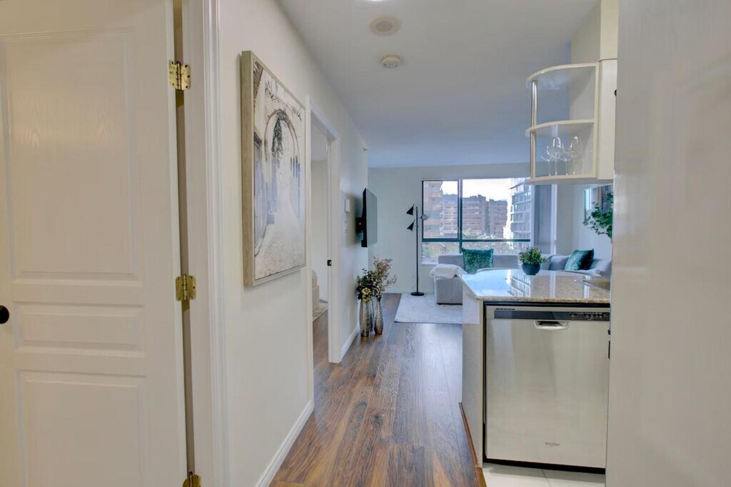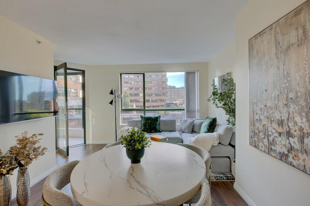 Feel at home in this luxury 1-bedroom, 1-bathroom sanctuary, offering 606 sq. ft. of living space. Designed by a trusted partner's staging team, the furnishing delivers a luxurious comfort and appeal with breathtaking art, décor and accent pieces that complement and enhance the space top to bottom. This apartment also features a storage den, kitchen and living room open space, solarium/den office, and a brand new in-suite washer and dryer. [SI]