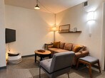 The advertised rate of $3,189/month is the lowest available price, based on a 30 day(s) stay with a move-in date of May 14, 2026. Rates vary depending on the duration of stay, season, and other parameters. For exact pricing and additional pricing components, please visit our website and enter your desired move-in and move-out dates. The rate is applicable when billed upfront; it can be higher if billed in multiple payments. Experience the best of Milwaukee and feel at home in this industrial-chic 2-bedroom apartment located in the heart of the Historic Brewery District. Featuring soaring ceilings and modern finishes, this loft apartment comfortably sleeps up to 5 guests. Amenities include self check-in, a smart TV with Roku, high-speed Wi-Fi, a dining table, a 24-hour fitness center, a theater, a shared laundry room, vending machines, and a community kitchen with a free Starbucks coffee machine and a food court with 5 local food truck vendors. This apartment includes one free parking space in a secured garage one block away. Additional parking is available in the same garage and costs $20/day, with prices increasing during events. Metered street parking is available throughout the neighborhood. Located in the heart of the historic brewery district, this apartment is just a 3-block stroll down cobblestone streets to the Fiserv Forum and a 5-minute drive to Downtown, Third Ward, and Marquette University. Check-in for this apartment ends at 9pm CST. This atrium unit's windows face the interior atrium, so there is less natural light than an exterior unit. HVAC systems are controlled by the building's management company, and settings cannot be adjusted, however the building has central heat and A/C and maintains comfortable levels of each throughout the year. The community laundry room requires using the Wash mobile app which has a $10 reload minimum, and the cost per load for washers and dryers is roughly $2 each. Trash must be placed in a dumpster or trash chute, never left in public areas, and cardboard must be broken down and never placed down the trash chute, with a minimum charge of $25 per bag/item that isn't properly disposed of. No smoking of any kind is allowed anywhere on the premises, including outdoor spaces, and a $250 fine will be assessed, with additional fees for remediation that may apply. Quiet time is after 10pm. Includes two dedicated workspaces. The garage has a vertical clearance of 7'2", which is enough for most consumer vehicles but may not accommodate larger vehicles such as RVs or full-size vans. [SI]