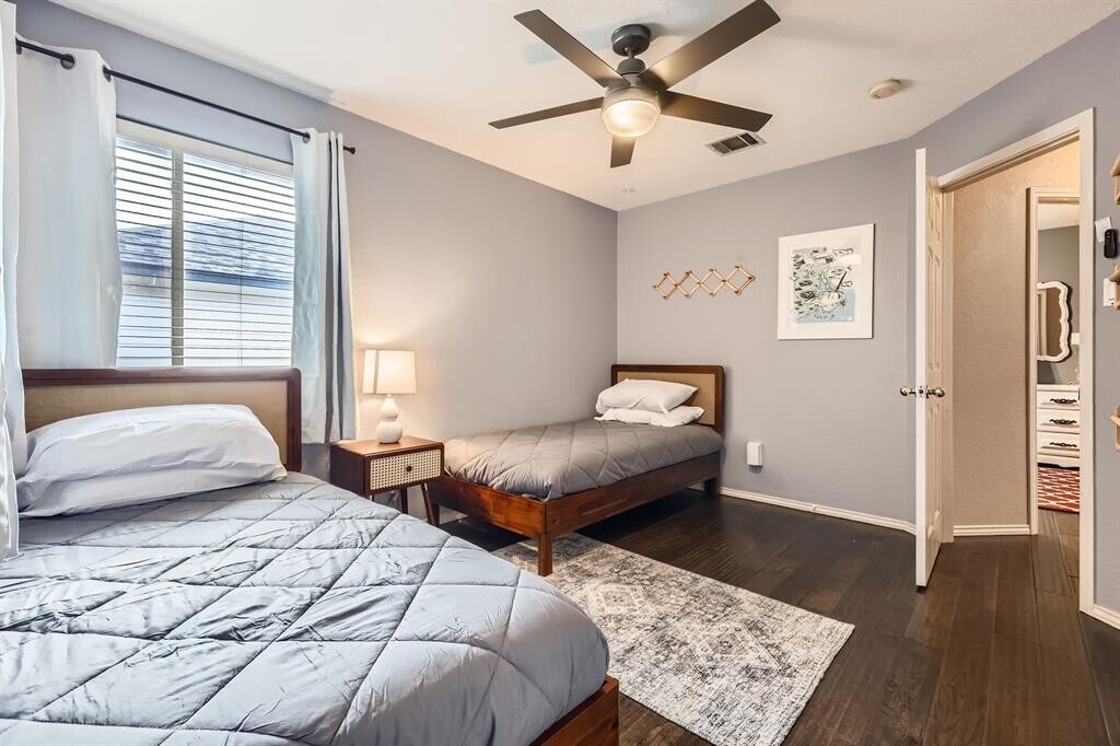 Experience the ultimate in convenience at 1125 Strickland Drive. This beautifully appointed 3-bedroom, 2.5-bathroom home comes fully furnished, offering a turnkey living solution in the highly desirable 78748 zip code. From high-end furniture to essential kitchenware, every detail has been curated for comfort and style. The main level boasts an open-concept floor plan with soaring ceilings and abundant natural light. The designer-furnished living area flows seamlessly into the kitchen, which features stainless steel appliances, a gas range, and a breakfast bar. A dedicated home office space provides the perfect environment for remote work. Upstairs, the expansive primary suite is a true retreat, complete with a king-sized bed, walk-in closet, and a spa-like ensuite bathroom. Two additional thoughtfully furnished bedrooms ensure plenty of space for guests or family. Property Highlights: Turnkey Living: Fully furnished with stylish, modern decor.. Outdoor Living: Large, private fenced backyard with mature trees and a patio—perfect for Austin evenings. Modern Conveniences: Includes washer/dryer, high-speed internet capability, and a 2-car attached garage. Location: Situated in the quiet Parkwood neighborhood, just minutes from the vibrant shopping and dining at Southpark Meadows, Menchaca Road bars (Moontower, Armadillo Den), and a short 15-minute drive to Downtown Austin. Ideal for corporate housing, relocation, or anyone looking for a stress-free move. Flexible lease terms may be considered; current price reflects 12 month term. MLS ID 5228480