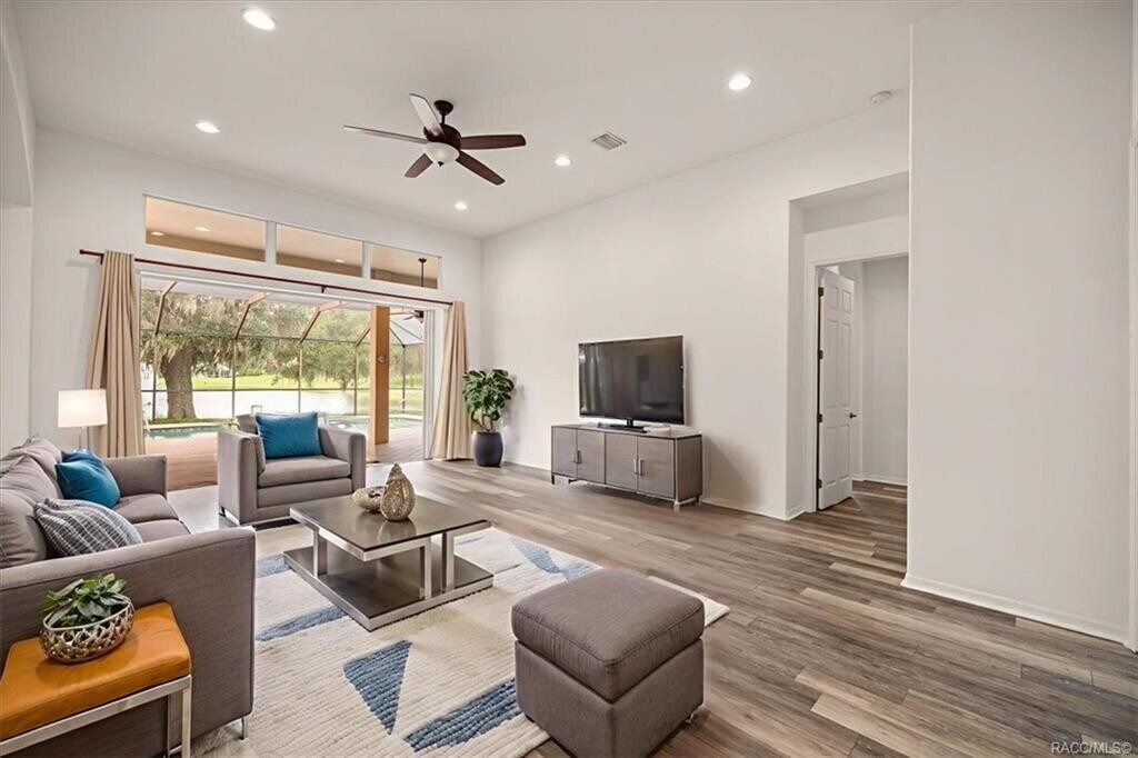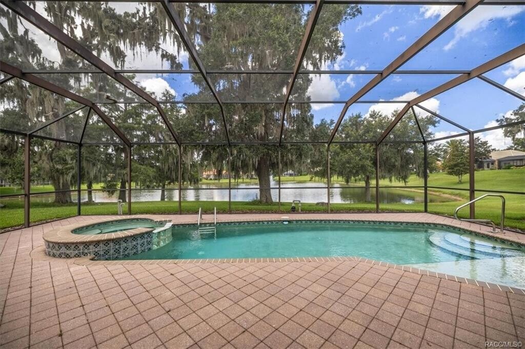 Picture yourself in a beautifully maintained home located in Terra Vista's gated Hunt Club—featuring a scenic water view, in-ground pool, and freshly updated interiors. This Citrus County home for sale offers exceptional value in a sought-after Florida lifestyle community. This 3-bedroom residence with a bonus room is designed for comfort and flexibility, highlighted by soaring ceilings, bay windows, and an abundance of natural light. The kitchen includes solid surface countertops, quality cabinetry, and a functional breakfast nook that flows seamlessly into the main living area. Enjoy freshly painted walls, doors, and baseboards, adding a crisp, upscale ambiance throughout. Durable, no-carpet flooring makes for easy, low-maintenance living. The clean, refinished garage floor and retractable door shade enhance functionality and visual appeal. A long-lasting tile roof adds to the home's overall value. Step outside to a screened lanai with an in-ground pool and upgraded screens—all overlooking tranquil water views. With a gas hookup already installed, the space is ready for an outdoor kitchen addition. What makes this home stand out? It's one of the best water view listings in Terra Vista, offered at an exceptional price with a low annual HOA premium. Buyers will also enjoy access to the full amenity package: three championship golf courses, a luxury fitness and spa center, on-site dining, a resort-style pool in development, pickleball, shuffleboard, and a dog park. Looking for homes in Terra Vista with water views and pools? This is your opportunity to own a move-in ready, competitively priced property in one of Citrus County's most desirable gated communities. Schedule your showing today.