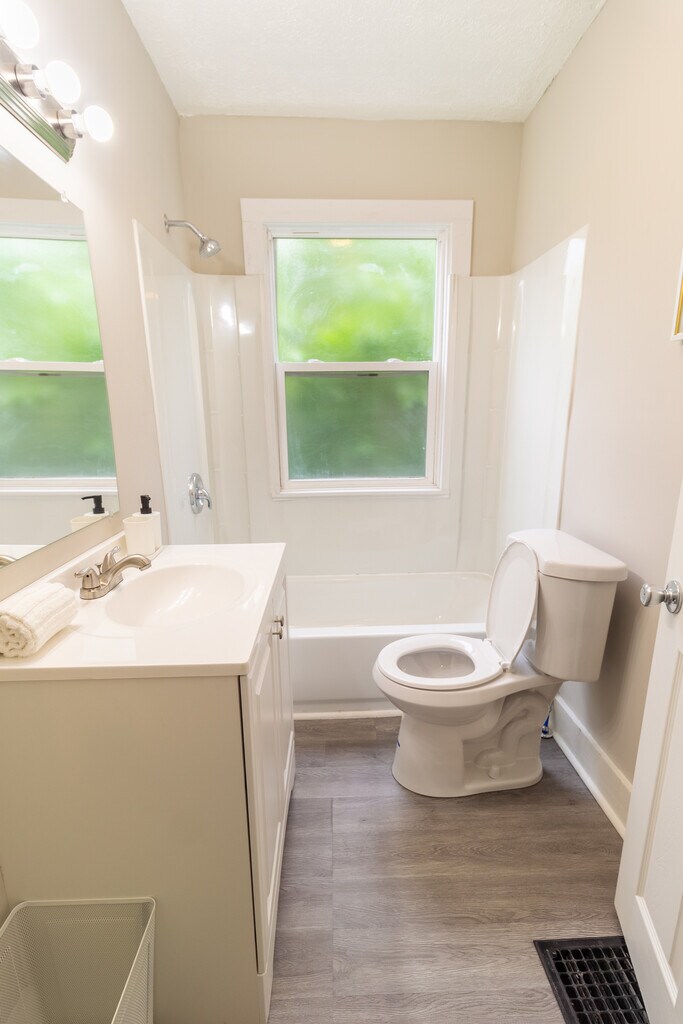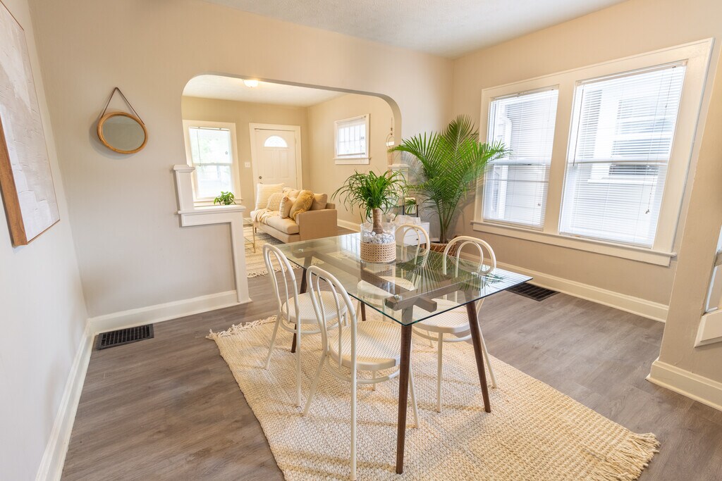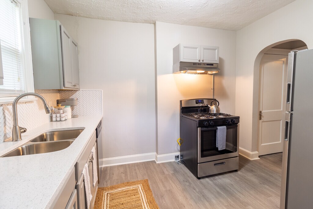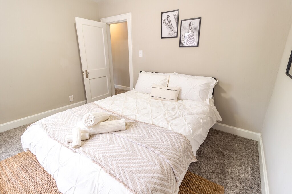 This fully furnished home offers a seamless living experience with all utilities included and fast Wi-Fi. The Space: This spacious home boasts three bedrooms and 1.5 baths, perfect for individuals, couples, or families. The largest bedroom features two full-sized beds, ideal for extra guests or children. You'll love the delightful fixtures and abundant natural light that fill every room. Highlights: Updated Interiors: Renovated kitchen, bathrooms, and fresh paint. Parking: Street parking and a private side spot. Fenced Yard: Private outdoor space. Downtown Access: Close to downtown. Laundry: In-unit washer and dryer. Comfortable living space with a large 55" TV High-speed internet