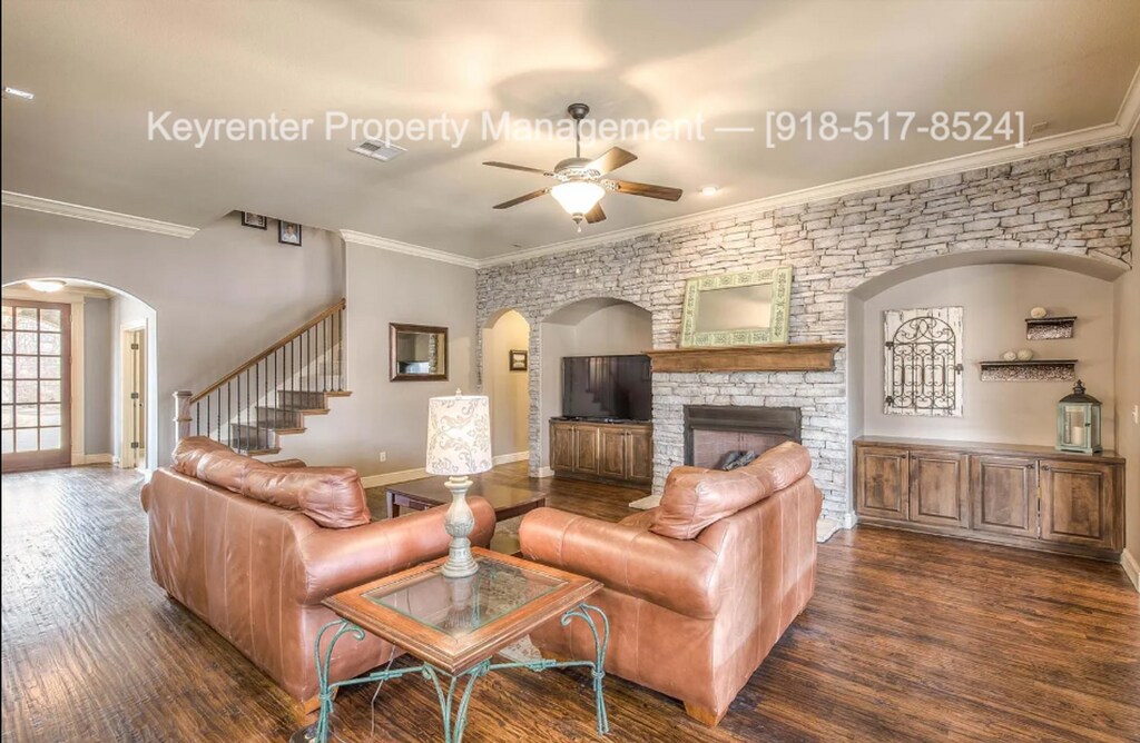 Well maintained and spacious rental home in desirable Bixby location! Boasting nearly 4000 SQFT, this home has it all! Features include an open concept floor plan, vaulted ceilings, traditional dining room, luxury kitchen with granite countertops, walk-in closets, and so much more. Property includes both a home office and a playroom. Beautiful LV flooring in the living area leading up to a fireplace give a warm and cozy feel to this stunning rental. Exterior features include beautiful landscaping, covered back patio, outdoor fireplace, 3 car garage, and a fenced back yard! Available: 6/1/2026 Text Sophie For Information - Appliances: Refrigerator, Stove/Oven, Microwave, Dishwasher Location: Home is part of the Woodcreek HOA - Easy access to all major highways, Plenty of great shops and local restaurants are nearby. Bixby Schools. HOA amenities include an outdoor pool and playground! Conditions: Application Fee $65, Minimum 1 Mo. Security Deposit, Lease Initiation Fee $200, Monthly Resident Benefit Package $25, Monthly Insurance Services $14-$19. Monthly Pet Rent Variable, onetime pet fee $250 (per pet). Pet Policy: This home is pet friendly for small dogs only A non-refundable fee of $25 (via ACH) or $30 (via credit card) is required by Pet Screening to process a pet profile. Profiles for service animals and "No Pet" declarations are free of charge. Your pet rent will be determined based on the FIDO score assigned by PetScreening and will correspond to one of the following categories: "1" paw score: $80/month pet rent "2" paw score: $60/month pet rent "3" paw score: $50/month pet rent "4" paw score: $40/month pet rent "5" paw score: $30/month pet rent Property Manager: Dan Mercede For more viewing appointments and rental applications, visit You must be prepared to provide 3 years of residential history as well as contact information for your rental references. You will also be asked to provide information on your monthly income, and please note that most properties require that applicant combined gross income is at least three (3) times the monthly rent amount. Credit score will be taken into consideration during the application review process. Any and all requirements listed may be cause for denial.