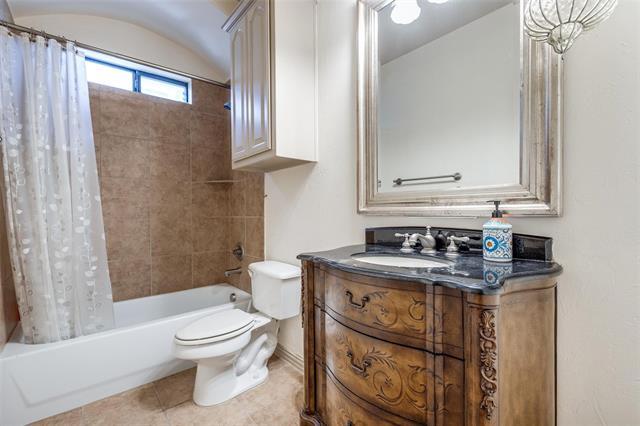 Beautiful traditional home located in the prestigious Shaddock Creek Estates in Frisco ISD. Hand scraped hardwood floors arched entryways and an elegant spiral staircase welcome you. The spacious kitchen features granite counters, SS double ovens, microwave and dishwasher, rich wood cabinetry, butler's pantry and is plumbed for gas. It is open to the living area which has a gas fireplace, built ins, 2 story soaring ceilings, Plantation shutters and an abundance of natural light. A coveted feature is a guest bedroom and full bath on the first level. The primary suite has a sitting area, and a spacious bath featuring a tub, shower, dual sinks and a stone countertop. Upstairs is a large game room with wet bar, a media room with a bonus room, a flex space, 3 bedrooms and 2 full bathrooms. Enjoy the outdoors on the stamped concrete patio with pergola. Extra space and peace of mind provided by an electric gate for the 3 car garage.