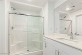 Take advantage of this fantastic rental opportunity! You'll be delighted by a spacious great room with high ceilings, a soothing palette, blinds, and durable tile flooring for easy maintenance. The impeccable kitchen boasts granite counters, sleek flat-panel cabinetry for a modern appeal, recessed lighting, stainless steel appliances, a pantry, and an island with a breakfast bar for casual meals. The primary bedroom features soft carpeting and a private bathroom with double sinks. Imagine tranquil evenings on the lovely balcony, which offers serene views of the surrounding Community. The Community showcases a recreation center, BBQ spots, a relaxing spa, a sparkling pool for refreshing dips, and well-maintained common areas. Don't miss out on this one!