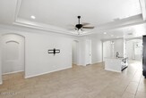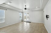 1,649 sq ft single-story 3-bedroom home in the desirable Morningside at Mission Ridge subdivision. Step into a bright,open layout with tall ceilings and a dedicated front dining space framed by arched entryways and windows that bring in great natural light. The kitchen is a highlightfeaturing granite countertops,rich dark cabinets,a cabinet-mounted microwave and oven,gas cooktop with vent hood,and a large island with undermount sink The open-concept design flows into a spacious living area with recessed lighting,ceiling fan,and tile flooring throughout.The primary bedroom is tucked at the back of the home for added privacy,with direct access to a large ensuite bath featuring double sinks,a soaking tub under a sunny window,a walk-in shower with tile surround,and a large walk-in closet with built-ins. Enjoy refrigerated air,and a fully landscaped backyard with artificial turf and a pergolalow maintenance and ready to enjoy. Located minutes from Loop 375,I-10,Eastlake Marketplace,parks