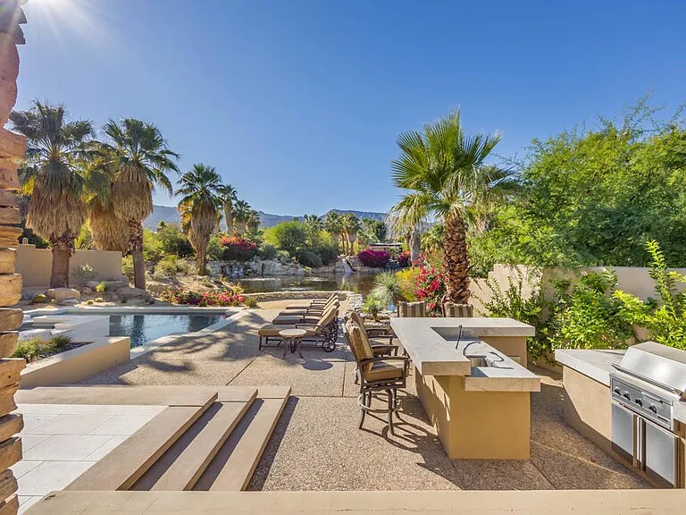 Property Id: 2136195 Tucked away in Bighorn Golf Club's Canyons side, this villa captures serene lake and waterfall views for a true retreat. Floor-to-ceiling sliders blur indoor and outdoor living, filling the vaulted great room with light from clerestory windows. The open plan flows from the living area to the dining room and chef's kitchen with pro-grade appliances, center island, and granite breakfast bar. Outdoor spaces impress with a patio for lounging, dining, barbecuing, plus pool and spa overlooking the water. The primary suite offers pocketing sliders to the pool, spa-like bath, and large walk-in closet. Two guest suites feature private courtyards and en-suite baths, one may double as a den. A detached casita adds a media center, morning bar, full bath, and walk-in closet—ideal for family or guests. Membership not included.