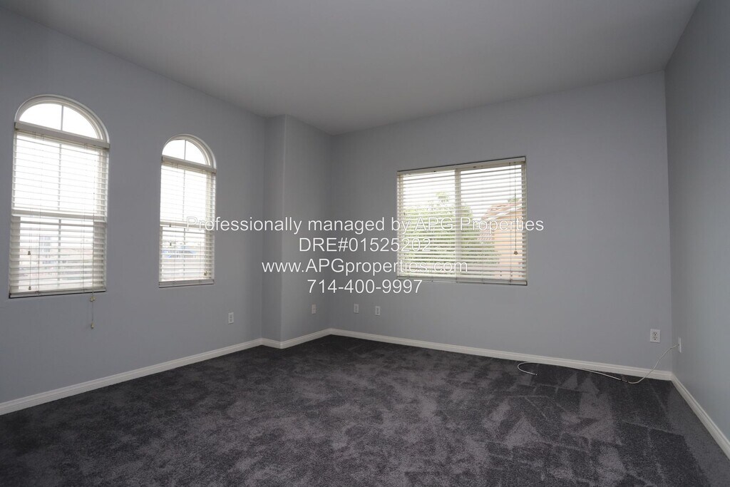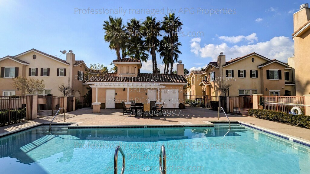 Newly Updated 4 Bedroom / 2.5 Bathroom Condo with 2 car garage in Anaheim APG Properties (DRE #01525202) End unit, two story home Refreshed interior paint Engineered flooring and tile downstairs Open living and dining area with fireplace Custom kitchen with granite counters and breakfast bar seating Large basin sink Inside laundry room with washer and dryer hookups (appliances not included) All bedrooms upstairs with newer carpet Spacious primary suite with private bathroom and walk in closet Primary bathroom features a separate shower and soaking tub, along with dual vanities Central Heating and Air Conditioning Direct access to the two car garage Enclosed front patio entry Upstairs balcony Community swimming pool Easy access to the 5 and 91 freeways NON-SMOKING HOME $4195 Security Deposit can be paid in two payments. This home is generally pet restricted, however there may be exceptions under federal or state law. AVOID RENTAL SCAMS - APG Properties is the property manager for the owner. This home can be viewed on our website for verification. Listings for this home from any person or entity other than APG Properties may be fraudulent. We do not advertise on Facebook, Craigslist, or any room-for-rent sites. We will not ask for cash, wire transfers, or any payments to view or hold the property. - For your security, Please do not give anyone money or sign a contract with anyone other than APG Properties. - Applications are only accepted through our website. This Property is offered by APG Properties DRE #01525202 Equal Opportunity Housing. We accept all sources of income. Please call or email Check out our website at RENTAL CRITERIA FOR APPLICANTS: Credit Score: Each Applicant must have a credit score of at least 675. No Evictions Rental History: Each Applicant should have no more than one late rent payment in the past 12 months, with verifiable rental history for the last three years, confirmed directly with landlords Employment Duration: Each Applicant must have been employed in their current position for at least 12 months Income Requirement: NET combined group income must be at least 2.5 times the monthly rent. Applicants utilizing housing vouchers must demonstrate income sufficient to meet their portion of the rent, in line with the voucher program’s guidelines. Income Verification: Income is verified through the most recent 3 months pay stubs and W-2 forms, directly confirmed with the employer. Self-employed applicants must provide At least two years of signed personal and business tax returns for verification and/or any verifiable 1099’s or K-1 forms. No Co-signers: We are not accepting cosigners at this property Complete the Pet Screening information, if you have pet(s), no pet(s), or Assistance Animal(s). The Website is Some property application requirements may vary. Please see the property posting on our website for specific information. Community Pool Trash