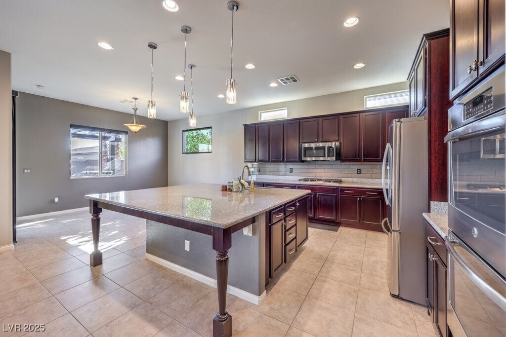 Welcome home to this stunning, HIGHLY UPGRADED SINGLE-STORY home in the master-planned Mountains Edge community! SOLAR POWER SYSTEM included, providing SIGNIFICANT MONTHLY UTILITY SAVINGS for tenants. This 3,137 sqft home offers 3 bedrooms, 3 baths, a 3-CAR GARAGE, plus an ADDITIONAL ROOM that can serve as a 4th BEDROOM, DEN, or OFFICE. Enjoy an open GOURMET KITCHEN w/ OVERSIZED EAT-IN ISLAND, GRANITE COUNTERS, tile backsplash, UPGRADED CABINETS, STAINLESS STEEL appliances, and DOUBLE OVEN. The spacious primary suite features a HUGE WALK-IN CLOSET, BEAUTIFUL WALK-IN SHOWER, MASSIVE SOAKER TUB, and dual sinks. Large secondary bedrooms share a Jack-n-Jill bath. The backyard is an ENTERTAINER'S DREAM with SALTWATER POOL, peaceful water feature, COVERED PATIO w/ MISTERS, putting green, and gas BBQ hookups. Home also features SURROUND SOUND, SOFT WATER SYS, and REVERSE OS SYSTEM. POOL SERVICE & LANDSCAPING INCLUDED! ~ CALL TODAY for a TOUR ~