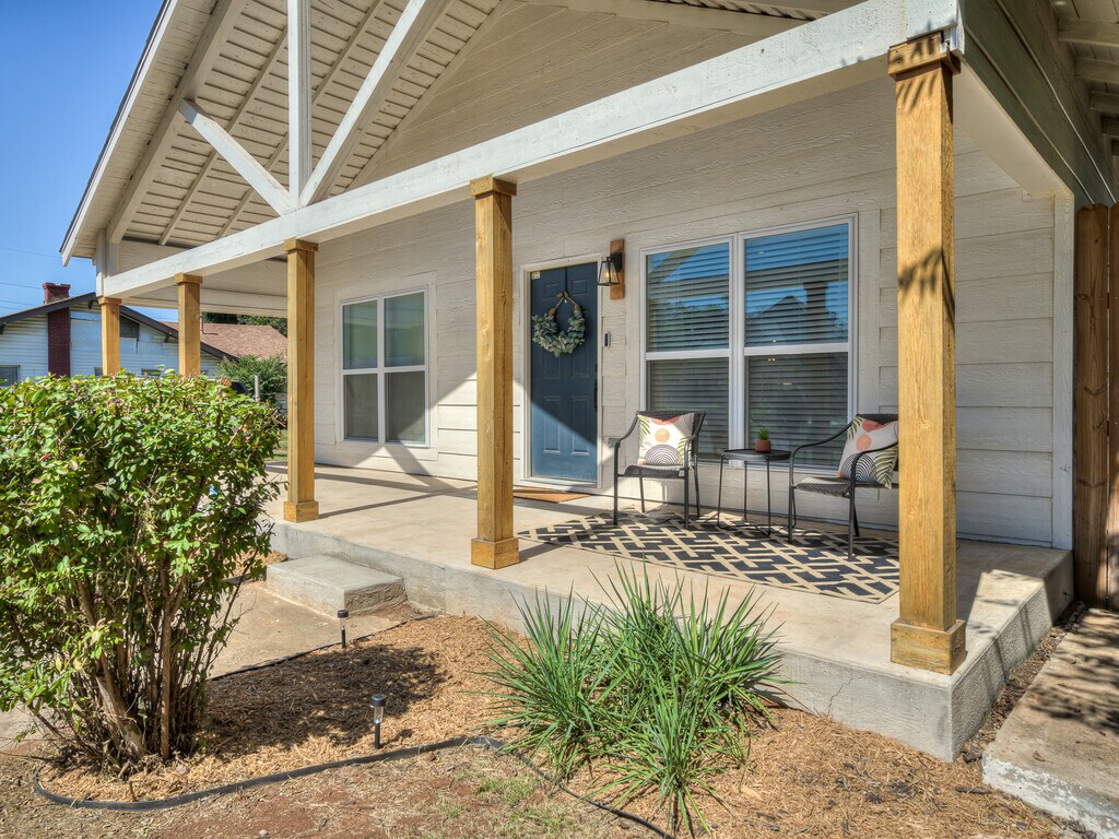 **FULLY FURNISHED HOME FOR MONTHLY STAYS. *** Perfect location for Traveling nurses, Residents, OU Medical students, and business travelers. This property is a unique and comfortable fully furnished home available for stays of 30 days or more with flexible leasing options here in Oklahoma City. ABOUT THE PROPERTY: Welcome to Rusty's Native Oasis in the Medical Community, where you will experience Urban living with a native twist. You will find a cozy stylish home away from home that reflects the heritage of Oklahoma City and the Native people. Enjoy this newly renovated 2 bedroom, 1 bath home with modern touches and an open concept living room, dining room, and kitchen. The kitchen is adorned with stainless steel appliances, 5 burner gas stove, granite countertops and an island with seating. It is fully furnished and equipped with everything you need for a pleasant stay such as a fully stocked kitchen, a beverage cart with a dual coffee maker for you to make a cocktail or enjoy a cup of coffee. Enjoy streaming your favorite shows on the 55' smart TV in the living room. There is a dedicated workspace with a desk in the living room, you have free Wi-Fi, USB ports throughout the home, in-unit full size washer and dryer, spacious bedrooms and closets, as well as a large driveway for parking. Enjoy the convenience of all utilities included and starter essentials. The home features a spacious covered front porch where you can sit and read a book, enjoy a cup of coffee or just enjoy the fresh air. Inside you will find a cozy living area and native-inspired decor, such as paintings, rugs and pillows throughout the home to add color and charm to the space. LOCATION: The home is located in the heart of the Medial Community, in an up and coming neighborhood just east of the Historic Lincoln Terrace. You will be in a old historic area close to the Oklahoma State Capitol, city attractions, business centers and hospitals. You will be less than 5 mins to OU Medical, Children's, OU College of Medicine, and so much more. It is just a short drive to popular locations in Downtown OKC for you to explore, like Bricktown, Scissortail park, Automobile Alley and Midtown. Easy quick access to major highways, I-235, I-40, I-35 and I-44. Please message us If you are interested in booking this home or want to know more about the property! **Ask about our discount for Medical Professionals!** * Price will fluctuate per season** * If you live locally please message us before applying. LEASE TERMS: Included in rent: Wi-Fi, all utilities. Lawn care. Starter essentials.Fully furnished. *Parking available on the premises, 2 cars max. *Complimentary essentials are provided at the beginning of your stay. Guest will be responsible for their own essentials (soap, toilet paper, coffee, laundry detergent, etc.) once the complimentary essentials have benn used. *Cleaning equipment and starter supplies are in the home for you to use. *For your safety and convenience, there are motion sensored lights around the property and outdoor security cameras recording at all times. *Self check-in: Smart-lock with your personalized code. This will be provided to you on the day of check-in! PETS: Small dogs are allowed, but are considered on a case-by-case basis. All pets have to be approved in advance. If approved there would be a refundable pet deposit and a $20 monthly pet fee per pet. No dogs over 40lbs. 2 pet max. Pets must be house trained and be up to date on shots. Must provide paperwork for service animals. POLICIES: This is a non-smoking home, please no smoking of any kind inside the home, tobacco, vaping, medical marijuana etc. NO drugs, illegal or illicit substances of any kind allowed anywhere on the premises. 4 guests maximum. This property is NOT available for SUBLEASING or ARBITRAGE. I do require a background check and screen all potential guests. Tenants are responsible for the application fee and background check. QUALIFICATION REQUIREMENTS: Good credit Good rental history with no evictions Clean background Employment and income verification This applies to all applicants. Failure to meet any of the requirements result in a discontinued application. (Application fee is nonrefundable) Please contact us if you would like to fill out a application or have any questions. Rusty's OKC, A Native Escape ( Amber) at to learn more. This property is managed by a responsible landlord using Avail landlord software.