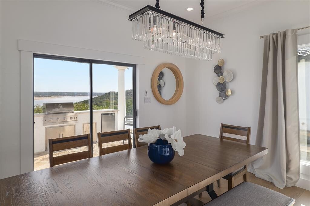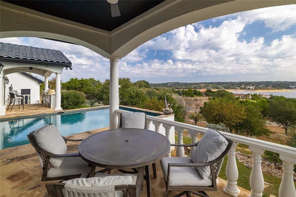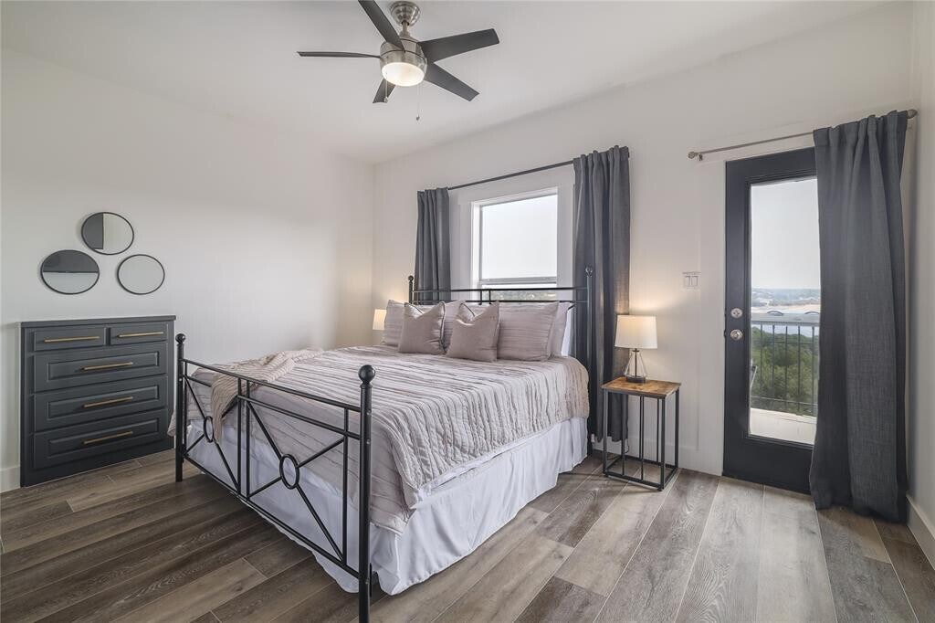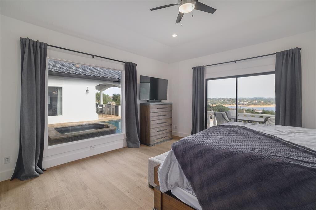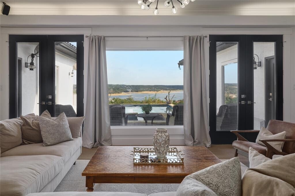Enjoy the best of Lake Travis living in this fully furnished lakeview home perched atop the hills of Thurman Bluff Estates. With all bills paid — including electricity, propane, water, lawn and pool maintenance — and flexible lease terms, this home offers a true turnkey experience. Perfect for corporate housing, transitional stays, or anyone seeking a stress-free lake retreat. Set on over two private acres in a gated community, this property captures sweeping lake views from every room. Designed for comfort, convenience, and style, the 5 bedroom, 4.5 bath, 3996 sq ft lakeview home features an open-concept layout, a gourmet kitchen with high-end appliances, with multiple inviting living spaces that flow seamlessly to the outdoor patio. Step outside to a private pool and hot tub overlooking miles of Lake Travis — the perfect setting for coffee at sunrise or relaxing evenings under the stars. The property includes a two car oversized garage with a separate bunk house and full bath, ideal for guests, extended family, or a home office. Every room comes beautifully furnished with quality décor and everything you need to move right in. Outdoor patios complete with outdoor kitchen and multiple seating areas. Complete with a bocce ball court, soothing fountain and firepit with Lake Travis views. Just minutes from the neighborhood boat launch, Hill Country wineries, and lakeside dining, 1128 Thurman Bluff delivers both privacy and proximity to the exemplary LTISD schools and everything that makes Lake Travis living special.