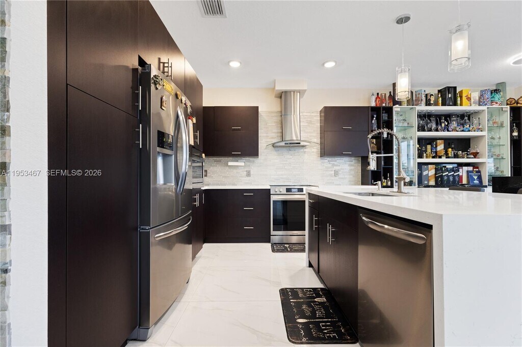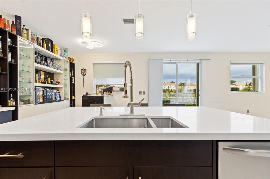 Charming and Exceptional 4-bedroom, 3-bath home plus den, ideal for a home office or guest room, located in the highly sought-after Balmoral community in Doral. This elegant residence features porcelain tile flooring throughout and an open-concept layout designed for both comfort and entertaining. The modern kitchen showcases quartz countertops, a large center island, Italian-style cabinetry, stainless steel appliances, and a sleek backsplash, seamlessly flowing into the family room with serene lake views. The outdoor space is perfect for relaxation and gatherings, offering a private backyard with jacuzzi and spacious terrace overlooking the water. The second floor includes a convenient laundry room near the bedrooms. The primary suite features a generous layout with a spacious bathroom, while one of the secondary bedrooms offers an oversized walk-in closet. Additional highlights include accordion shutters, recessed and feature lighting, and a built-in bar area. Ideally located just steps from the clubhouse and pool, and close to top-rated schools, shopping centers, restaurants, and major highways. A perfect blend of style, functionality, and location. MLS # A11953467