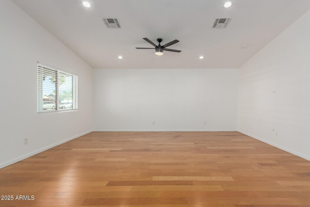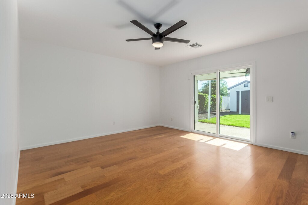 Take advantage of this fantastic rental opportunity in Garfield District * Lovely 3-bedroom home with charming desert landscape and an inviting front patio *Open layout with vaulted ceilings,recessed lighting,blinds,and beautiful wood flooring throughout *Stunning kitchen with quartz counters,flat-panel wood cabinets,chic pendant lighting,NEW (2024) stainless steel appliances,a custom walk-in pantry,and an island with a breakfast bar *Primary bedroom has access to the backyard for seamless indoor-outdoor flow,a spacious walk-in closet,and a private bathroom with double sinks *Both secondary rooms have walk in closets *Beautiful backyard with a covered patio,large storage shed,grass and citrus trees. Don't miss out on this incredible gem! Rent includes monthly landscaping