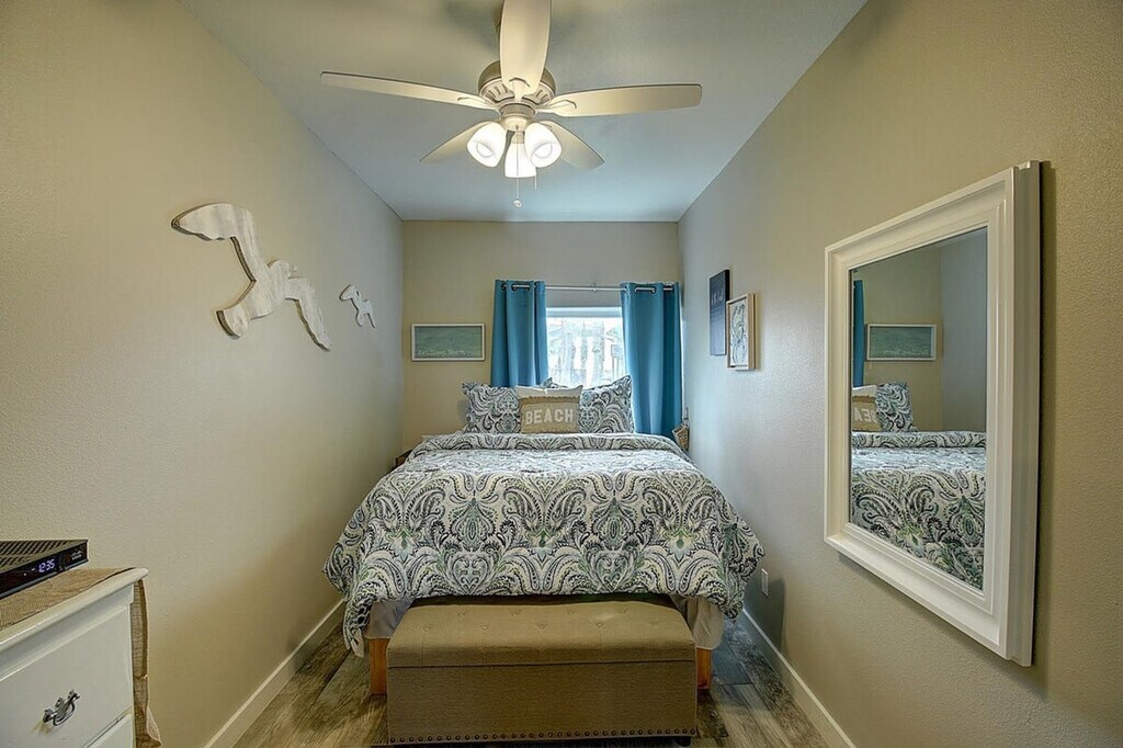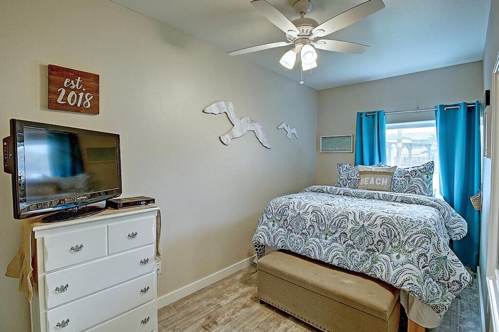 The advertised rate of $2,756/month is the lowest available price, based on a 30 day(s) stay with a move-in date of March 29, 2026. Rates vary depending on the duration of stay, season, and other parameters. For exact pricing and additional pricing components, please visit our website and enter your desired move-in and move-out dates. The rate is applicable when billed upfront; it can be higher if billed in multiple payments. Feel at home in this 1-bedroom condo in Port Aransas, located on the first floor and offering easy access to the beach. This charming condo features a queen-size bed, a twin trundle bed, and a TV in the bedroom. The living room includes a twin daybed with trundle and a Smart TV with cable. The fully equipped kitchen has a refrigerator, oven, microwave, dishwasher, and a drip coffee maker. There is also an island with seating. Enjoy wireless internet access and Smart TVs with cable service in each room. Community laundry facilities are available. Boat parking is available for smaller bay boats. Notify the office when booking. Parking is limited to one vehicle. Nearby attractions include Port Aransas Beach, Leonabelle Turnbull Birding Center, University of Texas Marine Science Institute, Scarlet Lady Dolphin Adventure, Mustang Island State Park, Fisherman's Wharf, and Roberts Point Park. There are many restaurants in the area, including Tortuga's Saltwater Grill, FINS Grill and Icehouse, Virginia's on the Bay, Grumbles Seafood Co., and Roosevelt's at the Tarpon Inn. Port Aransas is constantly evolving with ongoing construction, building projects, and community improvements. Island life comes with seasonal pests like mosquitoes, but the properties receive professional pest control treatments every month. Cable and Wi-Fi connectivity might be unpredictable. Quiet hours are between 10 PM and 7 AM per city ordinance. Smoking and vaping are not allowed inside or outside this property, and there is a $500 charge if evidence of smoking exists. Pets are not allowed in this property, and violators will be asked to leave without a refund and charged a $500 clean-up fee. No parties or events are allowed, and violations may result in immediate termination of the stay. The primary renter must be at least 25 years old. Check-in is at 4 pm, and check-out is at 10 am. [SI]