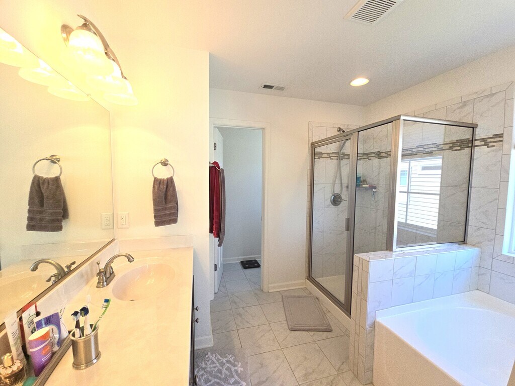 Don't miss this beautiful corner-lot 5-bedroom, 3 bath home, with easy access to the interstates, shopping, schools and bases. The extremely spacious home features a huge kitchen with plenty of countertop space and island with white granite countertops, large vaulted living room, formal dining room, sunroom, 1st floor bedroom, spare room/office, foyer, mud room and attached 2-car garage. On the 2nd floor you'll enjoy the three bedrooms, bath, and a huge primary suite equipped with a separate shower, jetted tub, double-sink, and a dreamy walk-in closet! Outside, you enjoy a nice large paver patio, gazebo, a green area, and only a short distance to the association clubhouse where you can enjoy the exercise room and pool. Naval Station Norfolk, NATO Hdqtrs, JEB Little Creek and Naval Air Station Norfolk are all within 17 miles. Seeing is believing!