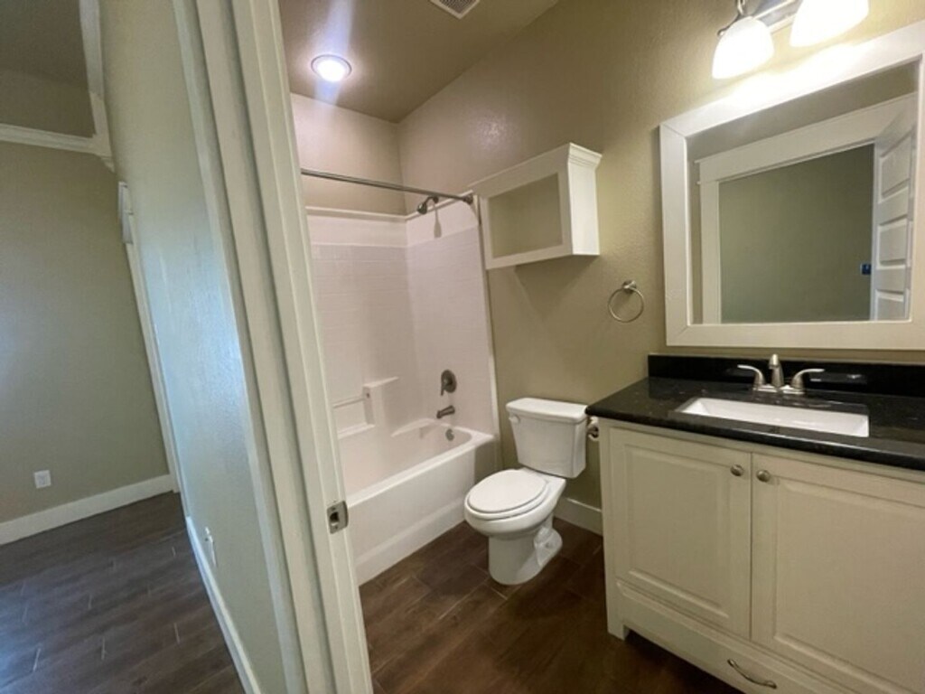 Beautiful three bedroom three-bathroom home located in the gated Napa Cottages community where you can take advantage of the beautiful community pool, outdoor fitness area, gated dog park, and the paved walking trail. This community is right down the street from ACU, HSU, TTU, Hendrick Health System, and the new Allen Ridge shopping and dining center! This home has beautiful dark wood tile and crown molding throughout and each bedroom is equipped with its own attached full bathroom. The beautiful granite counter topped kitchen boasts all stainless-steel kitchen appliances including a microwave, refrigerator, stove, and dishwasher. Relax on the front steps of your covered porch or in the privacy of your fenced-in side yard. Additional amenities included in your home will include a smart home alarm system, rear covered parking, and a full laundry room with a full-sized washer and dryer.