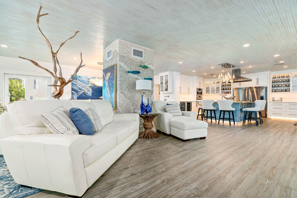 This exceptional beachfront estate on Gulf Way in Pass-a-Grille is the ultimate coastal retreat, offering 3 bedrooms and 3.5 baths in the main home along with a private 1 bedroom, 1 bath guest house. Styled with beautiful beach decor and finished in a modern coastal design, the property blends luxury and comfort throughout. The main residence showcases two expansive covered balconies with sweeping Gulf views, with the first-floor balcony opening to the deck and oversized swimming pool. The second floor offers an open-concept layout with a spacious living room, dining areas, and plenty of lounge seating, complemented by a grand kitchen featuring stainless steel appliances, a gas range, dual dishwashers, wine coolers, generous cabinet space, and a convenient half bath. The primary bedroom is a true retreat with its own office nook, spa-like ensuite bath, and a large walk-in closet with laundry. Two additional bedrooms include ensuite baths, with one offering its own Gulf-view balcony. Additional features of the home include a Peloton located off the primary, a 2-car garage with four garage spots and washer and dryer, multiple storage closets, and seamless indoor-outdoor living spaces. The mother-in-law suite provides added privacy with one bedroom and one bathroom, ideal for extended family or visitors. Designed for both comfort and convenience, the property also includes a Tesla charging station, multiple storage rooms, and beautifully appointed interiors throughout. Nestled directly on the sands of Pass-a-Grille, the home offers unbeatable access to the beach and breathtaking sunsets every evening. Just steps from charming shops, waterfront dining, local art galleries, and the historic Pass-a-Grille community, the property also provides quick access to St. Pete Beach and downtown St. Petersburg with vibrant nightlife, cultural attractions, and nearby airports. Maximum occupancy is 8. Small hypoallergenic, non-shedding dogs may be considered. Seasonal rates are as follows: December $25k January $30K February $35k March $40,000 April $35,000 May $25,000 June $30,000 July $30,000 August $25,000 September $25,000 October $25,000 November $25,000 December $30,000 The property is also available as an annual rental at $20,000 per month with the tenant responsible for utilities. Renters are responsible for first month, last month, a security deposit equal to one month's rent, and move-out cleaning. The owner provides pool service, lawn care, and pest control.