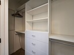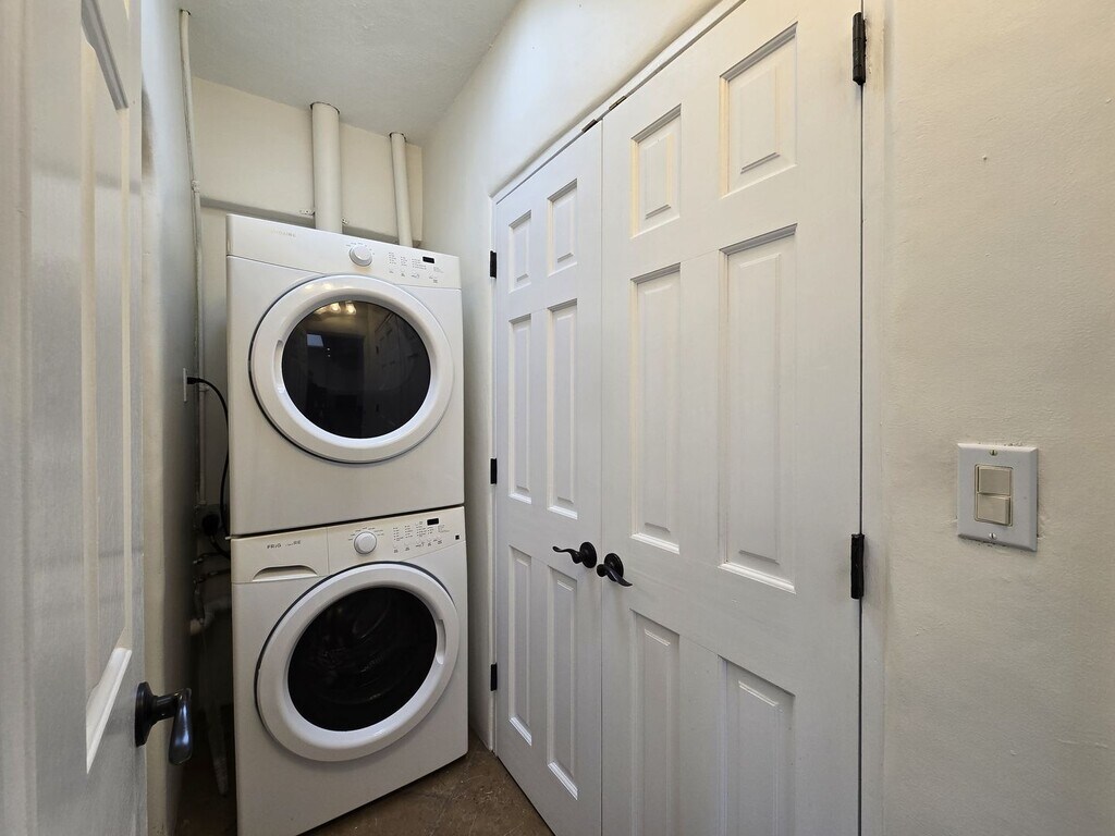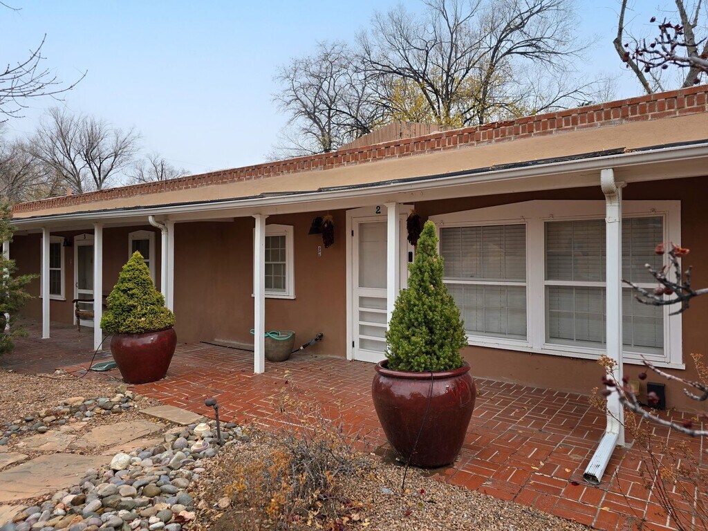 Discover a rare and captivating studio apartment nestled in the heart of downtown Santa Fe. This 610 square foot oasis perfectly balances authentic Southwestern flair with modern luxury, offering a private, elegant retreat just moments from the city's vibrant culture. Step inside to an expansive, sun-drenched main living area defined by a striking vaulted ceiling finished in whitewashed tongue-and-groove planking, beautifully framed by clean white beams. Natural light floods the space, primarily from a large, adjustable overhead skylight and multiple picture windows overlooking the serene patio areas. The floor is laid with rich, wood-look ceramic tile, grounding the space with warmth. The true centerpiece is the wood burning fireplace, providing a classic, cozy focal point. Architectural interest abounds with a set of magnificent, rustic barn doors finished in distressed turquoise and white, providing a unique, artful division for the sleeping area. Enjoy the convenience of a dedicated laundry closet featuring a full-sized stacked washer and dryer, and a custom-fitted closet system with built-in shelving and drawers for exceptional organization. The studio boasts a beautifully appointed kitchen designed for the home chef with rich, dark wood cabinetry complemented by stunning, deep green natural stone countertops. The kitchen also features a gas range, over-the-range microwave, and a modern French-door refrigerator. The luxurious bathroom features a vanity with matching green stone countertops, a hammered copper vessel sink, and a spacious walk-in shower. The exterior embraces classic New Mexican Pueblo-Revival architecture with warm stucco and a covered, brick-paved front portal. The apartment offers access to tranquil outdoor spaces, complete with handsome privacy walls, mature trees, and landscaping. Enjoy alfresco dining or relaxing on the patio furniture, surrounded by the beautiful foliage. This downtown studio is more than just an apartment—it's a quintessential Santa Fe experience, ready to be your peaceful home base in the City Different. Brant Goodman, Qualifying Broker Landseer Management: Experience the Difference Rental Fees & Policies Pet Policy • $250 non-refundable pet administration fee • $50/month per pet Early Lease Termination • Fee equal to one month’s rent plus gross receipts tax • Tenant remains responsible for rent and utilities until the unit is re-rented Payment Policies • Late Fee: 5% of monthly rent if payment is not received on time • NSF Fee: $25 charge for returned payments Utilities • Flat fee of $50 a month for water, sewer, and trash. • Electricity and gas will be transferred into the tenants name and paid directly to utility companies. Renter’s Insurance • Tenants are required to obtain and maintain renter’s insurance for the duration of the lease.