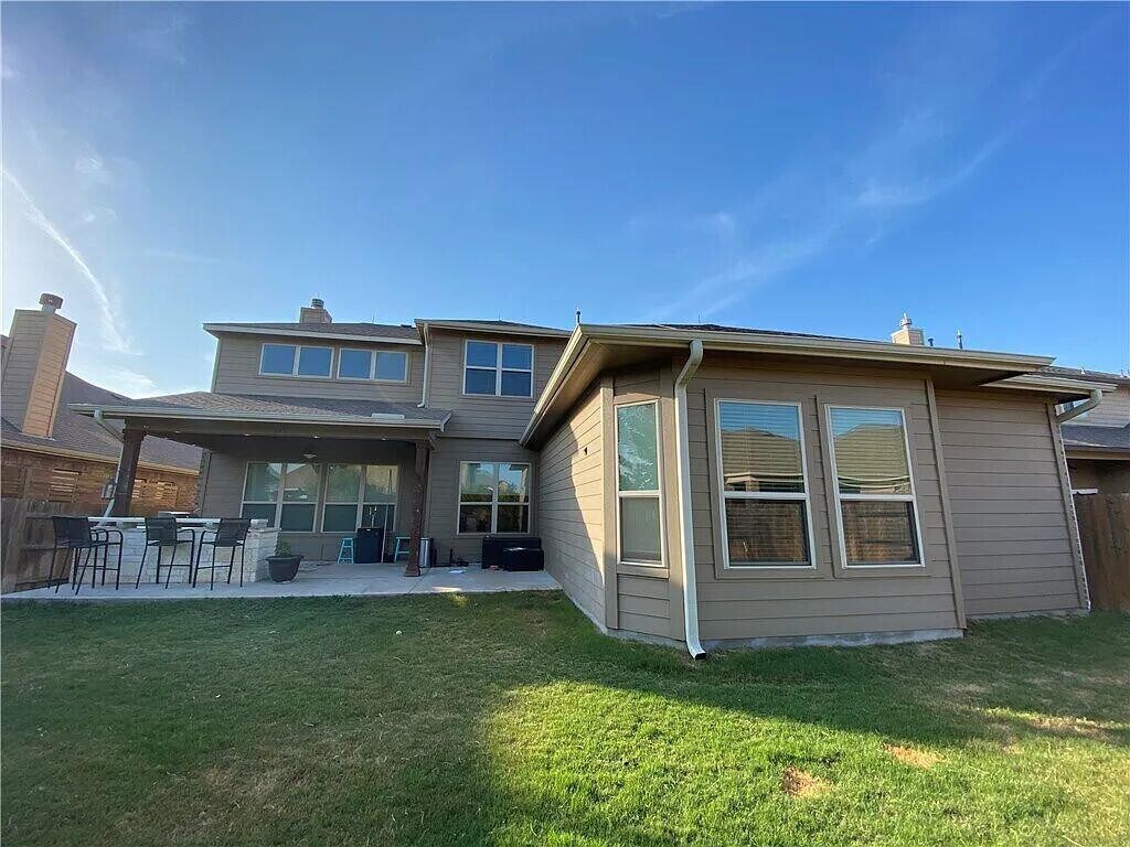 Welcome to this beautiful home in the desirable Parkside at Mayfield ranch neighborhood in Leander/Georgetown, Texas. This beautifully designed two-story home offers a perfect blend of comfort and style. Excellent Leander ISD Schools and just a 2 Minute walk to Parkside Elementary school. 4 Bed and 3.5 bath home with upgrades including dedicated office, huge Texas sized game room and high ceilings, open ceiling throughout, and a laundry room with washer and dryer included. The open-concept kitchen, featuring stainless steel appliances, Quartz countertops, a gas cooktop. 3-Car Garage with industry grade epoxy. The House is thoughtfully upgraded with hardwood floors on the complete first floor, extended covered patio with full kitchen setup, Vegetable beds and plants. Fantastic neighborhood with 2 pools, playground, & walking trails that connect to Williamson County Park. Easy access to shopping/restaurants and major highways (I-35 & 183A) and minutes away from New Apple campus. It's the perfect place to call home.