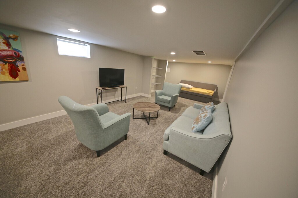 Short or long-term lease options. Home in the heart of Bloomington near Switchyard Park. Two bedrooms, one bath on the main floor, and a large Fully finished basement with a living area, office, and full bathroom. Front port and back patio. Sun room. Open floor plan with high ceilings. Completely remodeled one level home over finish basement. Open floor plan. Sun room. Patio. Front porch.