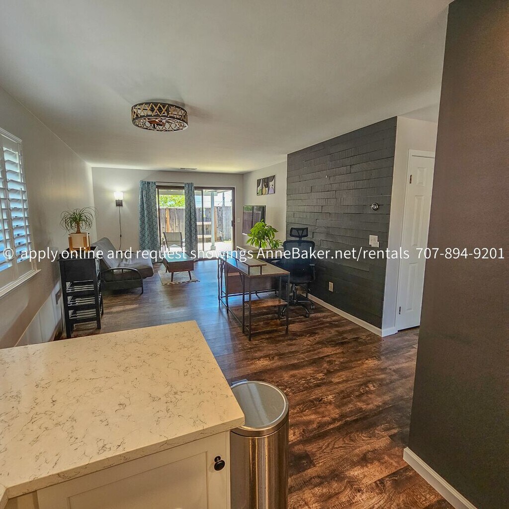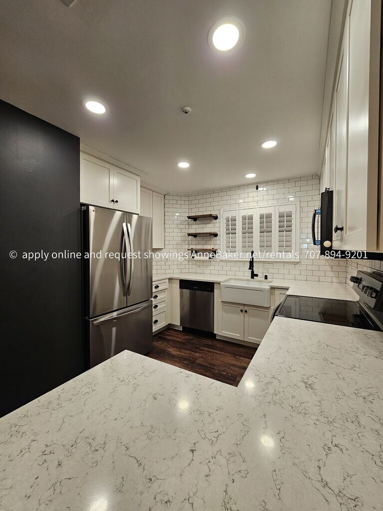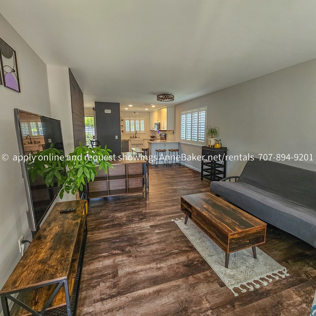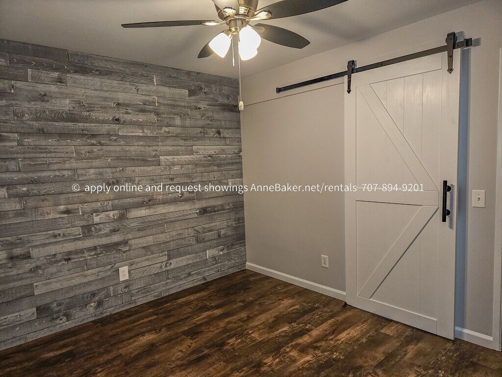 Welcome to this exquisitely updated condo in Cloverdale, CA. This one-story, end-unit, features 2 bedrooms and 2 full bathrooms, with a fenced yard that includes an exterior gate and a covered pergola for outdoor enjoyment. The interior is gorgeous! Decked with new vinyl plank flooring, feature walls, barn doors, new fixtures and appliances, it's obvious the owner has spared no expense. The kitchen and both bathrooms have been fully renovated. You will love what you see. The front of the home includes a security screen door. The HOA dues are paid by the owner and include an additional storage locker, a rare find in Cloverdale Meadows. One assigned covered and one assigned uncovered parking space along with garbage receptacles are included with this rent. The HOA tends to yard maintenance in common areas. Don't miss out on this must-see beautiful condo. Residents can take advantage of the community pool, community room, greens spaces and nearby off-site amenities. With close proximity to shopping, parks, public transportation, restaurants, and highways, this condo offers convenience and comfort.