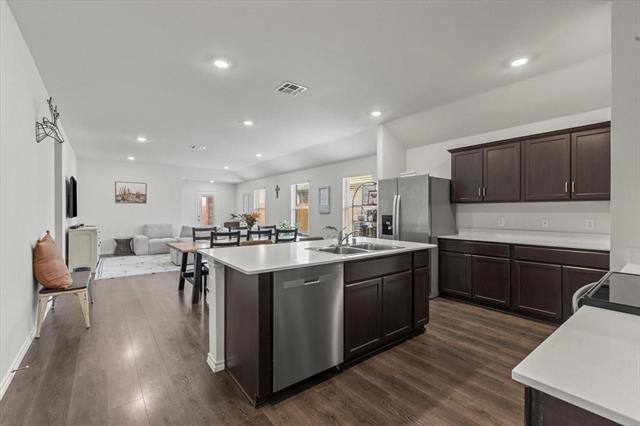 This barely lived-in single-story home blends modern comfort with timeless charm, highlighted by a striking stone elevation that enhances its curb appeal. Inside, the open-concept floor plan offers seamless flow between spaces, featuring four spacious bedrooms, two well-appointed bathrooms, and a convenient front-entry two-car garage. The kitchen is a true centerpiece, complete with a large island, stainless steel appliances, and direct views into the dining and family rooms, making it perfect for both everyday living and entertaining. Laminate wood-look flooring extends throughout the main living areas, adding warmth and style. Outdoors, the expansive backyard provides ample space for gatherings, relaxation, or play, while nearby catch-and-release fishing offers a unique lifestyle perk for those who enjoy nature close to home. Home is available immediately. Pets are welcome and considered case by case ($600 refundable per pet). HOA is paid by owners. Need to bring Washer-Dryer-Refrigerator. No housing vouchers, no section 8. Mention your broker name and number in online application if applicable. Qualifying criteria Deposit determined by Credit Score. $51 per adult application fee.