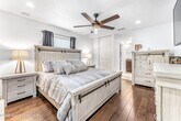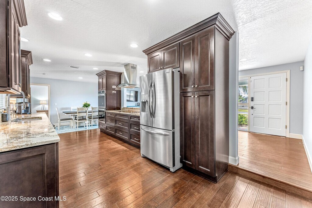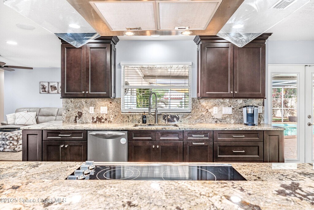 Villa De Palmas! Well appointed home fully remodeled Pool home featuring 4 bed/2 bath and a fenced in Private Yard Waterproof,stain resistant wood floors in the main living spaces and primary suite. HUGE kitchen has soft close,wood shaker cabinets,upgraded hardware,electric range overlooking the family room,double oven,granite countertops with matching backsplash,and more! Primary suite with double sinks and walk-in shower with decorative tile. Massive back yard,with brand new white vinyl privacy fence,and workshop w/ electricity and water. The oversized patio is perfect for gatherings and parties! Located close to Shopping,Beaches,Golf and more!