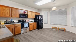 Open and spacious floorplan in Cibolo/Falcon Ridge Subdivision. No Carpet in this one! New flooring and paint just months old! Large open living area combined with dining space makes for easy entertaining or family events. Eat-in Kitchen has recent appliances ready for tenant use! Primary bedroom features nice bath with separate tub/Shower and a dual vanity. Spacious secondary bedrooms. Smaller backyard for easy maintenance with covered back patio for relaxing outside.