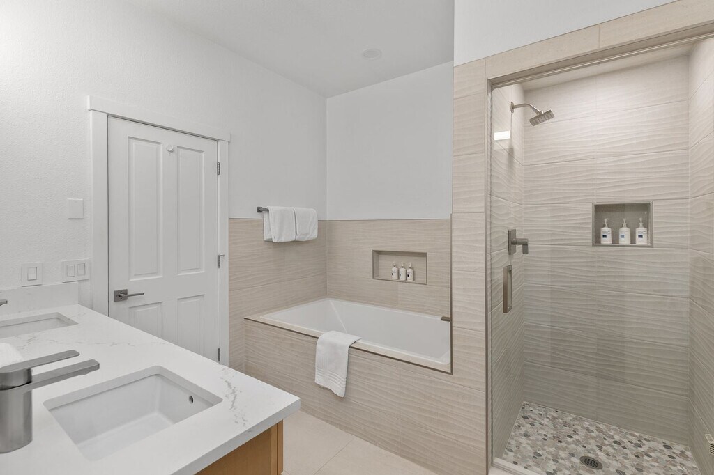 Feel at home in Blue Mesa 4, a 3-bedroom, 2.5-bath condo that sleeps 6-8, perfectly located steps from the ski lifts, hiking trails, and Sunset Plaza. This home features a remodeled gourmet kitchen, a gas fireplace, and high-speed internet. Enjoy mountain views from the two patios. The kitchen is fully equipped with beautiful tile and quartz countertops. A full-size washer and front-loading dryer, detergent, and dryer sheets are provided. Entertainment is provided by internet-ready TVs. The main floor features vaulted ceilings, a comfy sectional, a gas fireplace, and a 47-inch flat-panel TV. The master bedroom has a king-size bed, an internet-ready flat-panel TV, and an en suite bathroom with a double vanity, soaking tub, and steam shower. The second bedroom has a queen-size bed. The third bedroom has a queen-size bed and a queen-size trundle bed with a memory foam mattress and a 42" flat-screen TV and an en suite bathroom. Enjoy access to the community hot tub. One reserved garage space is available, and offsite paid options are available nearby for additional vehicles. This centrally located condo is in the core of Mountain Village, steps from dining and shopping at Lift 1. Pets and smoking are not allowed. Registration Number: 41 [SI]