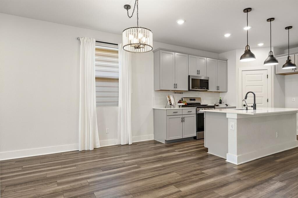 Move in ready and priced to lease — 113 Lyrebird is where modern design meets comfort and craftsmanship in this nearly new Ashton Woods home built in 2022! Lightly lived in and meticulously maintained, this home truly feels and smells brand new from the moment you arrive. Featuring a very unique floor plan for Ashton Woods, this thoughtfully designed home lives larger than its 1,860 sq. ft., with every inch of space perfectly utilized for comfort and flow. The designer kitchen is a showstopper, showcasing gray cabinetry, white granite countertops, a large island, gas cooktop, built-in oven and microwave, upgraded light fixtures, and smart storage around every corner. The kitchen opens seamlessly to the inviting family room, creating an ideal space for gatherings, laughter, and everyday living. At the front of the home, a dedicated office with elegant glass French doors provides the perfect private workspace — quietly tucked away from the bedrooms. The luxurious primary suite offers a custom walk-in closet and a spa-inspired bathroom complete with a mud-set shower, large soaking tub, and dual sinks. Each secondary bedroom includes a walk-in closet and ceiling fan, combining both comfort and function. Enjoy outdoor living on your extended covered patio, surrounded by a private backyard retreat. Additional highlights include an epoxy-coated garage floor, EV charging station, pest control tubes built into the walls, a dedicated laundry room complete with cabinetry and a dedicated sink as well as a sprinkler system in front and backyard to keep the professionally landscaped yard in tip top shape. Perfectly located near shopping, dining, and major highways, this home offers modern living, thoughtful design, and everyday ease. Full security system with 180° cameras and live view, no subscription needed. Homes like this rarely come available! New amenity center under construction to open soon! Come see why 113 Lyrebird Ln is the one you’ve been waiting for!
