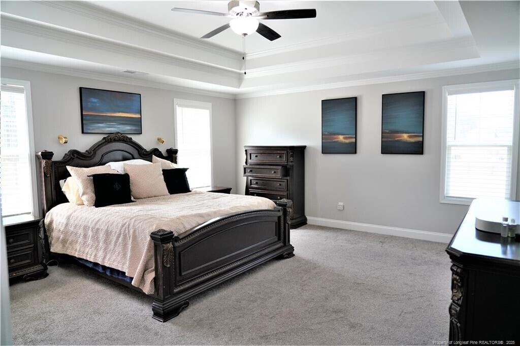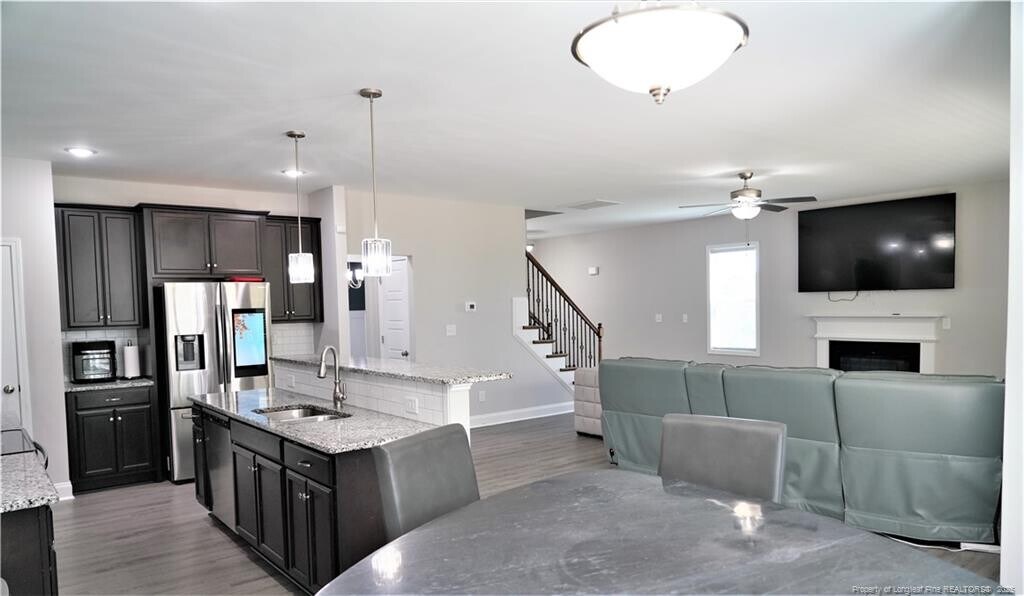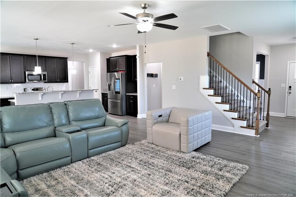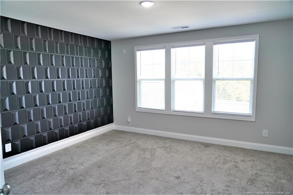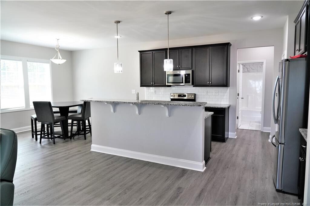 Located just 20 minutes from the Main Gate and Randolph Gate of Fort Bragg, this beautiful home has room for everyone with 5 bedrooms, 3 full baths, and an open layout perfect for comfortable living. As you enter, you're welcomed by a large formal dining room with elegant details. The home flows into an oversized great room and a spacious kitchen featuring granite countertops, stainless steel appliances, including 3-door French door Refrigerator with Family Hub, a tile backsplash, and a center island overlooking the living area—great for gatherings or hosting guests! A flex room on the main level can be used as an additional bedroom, office, or playroom, with a full bath nearby for added convenience. Upstairs, the primary suite offers double tray ceilings, a large walk-in closet, and a private bath with a double vanity, garden tub, and separate shower. The laundry room (washer and dryer in the unit) and three additional bedrooms are also located upstairs, with two connected by a Jack & Jill bath. Enjoy space, comfort, and a great location close to shopping, dining, and post access. This home is ready for you! No pets allowed!