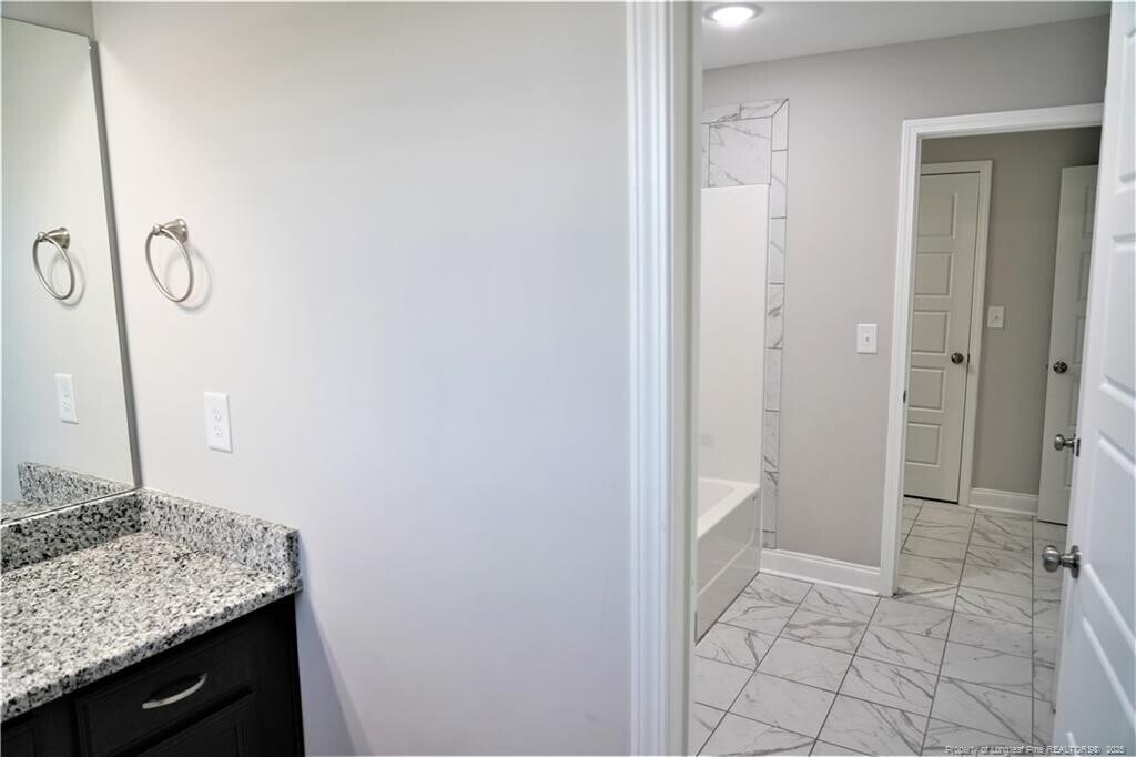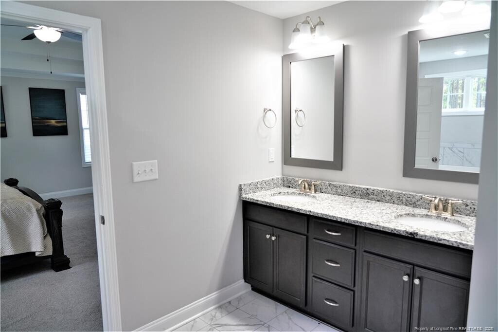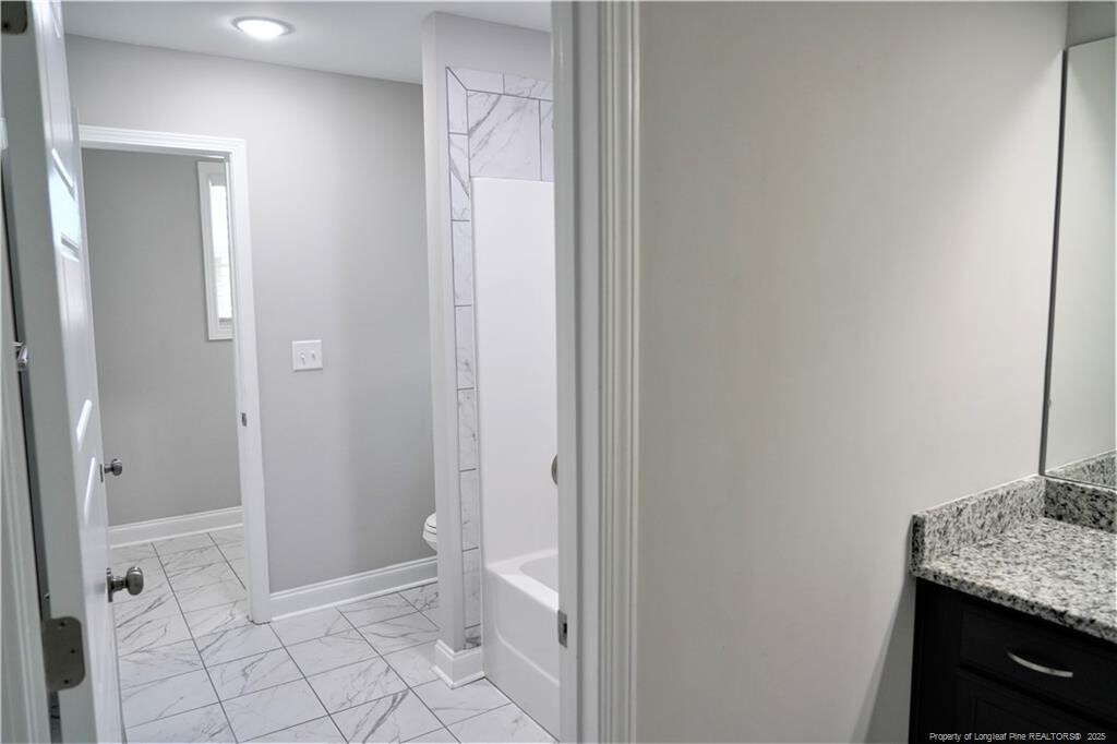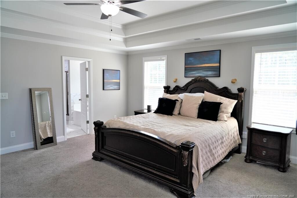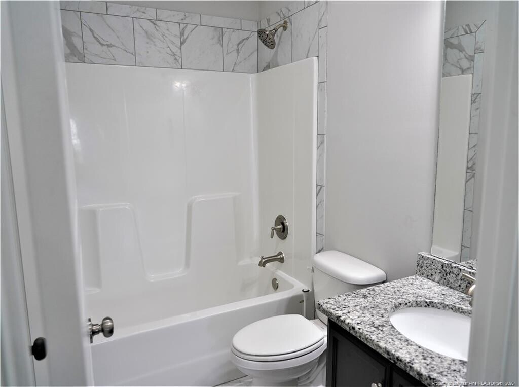 Located just 20 minutes from the Main Gate and Randolph Gate of Fort Bragg, this beautiful home has room for everyone with 5 bedrooms, 3 full baths, and an open layout perfect for comfortable living. As you enter, you're welcomed by a large formal dining room with elegant details. The home flows into an oversized great room and a spacious kitchen featuring granite countertops, stainless steel appliances, including 3-door French door Refrigerator with Family Hub, a tile backsplash, and a center island overlooking the living area—great for gatherings or hosting guests! A flex room on the main level can be used as an additional bedroom, office, or playroom, with a full bath nearby for added convenience. Upstairs, the primary suite offers double tray ceilings, a large walk-in closet, and a private bath with a double vanity, garden tub, and separate shower. The laundry room (washer and dryer in the unit) and three additional bedrooms are also located upstairs, with two connected by a Jack & Jill bath. Enjoy space, comfort, and a great location close to shopping, dining, and post access. This home is ready for you! No pets allowed!
