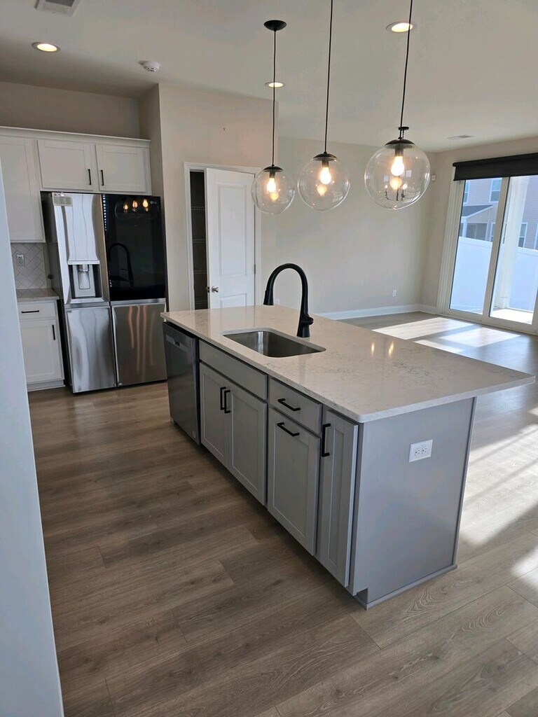 This is the ONLY four bedroom home available in Hawthorne Landing! High-end features and finishes abound including quartz countertops, stainless steel appliances with gas range, upgraded lighting & plumbing fixture, and luxury plank flooring throughout the entire first floor. The impressive primary suite features a grand tray ceiling, oversized shower, and massive walk-in closet. Situated on a large homesite, this magnificent home also features a spacious screened porch, double-width driveway that can accommodate numerous cars, and an oversized garage. Individual lawn maintenance and irrigation are included!