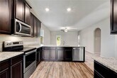 The gorgeous one-story residence is located within the Liberty Parke neighborhood. This house features three bedrooms, two full bathrooms, a spacious open-concept family room, and a private dining area. Inside, you'll discover a range of impressive upgrades, including stainless-steel appliances, exquisite wood cabinetry adorned with crown molding, granite countertops, and an attached two-car garage equipped with a Wi-Fi-enabled garage door opener. Additionally, this home offers a fully enclosed backyard and a covered rear patio for your enjoyment